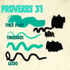 • Scripture Brushes: Paint beloved verses (e.g., Proverbs 31 , Psalm 91, Isiah 43:2 and more) in a lush, oil-paint style, perfect for devotional art and Bible journaling.