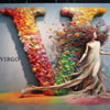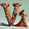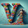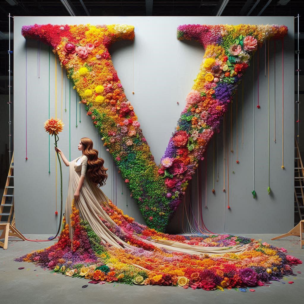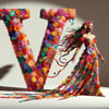 This life-size letter V, adorned with an array of multicolored flowers, is the perfect tribute to the Virgo spirit. The Virgo maiden stands gracefully beside the vibrant V, her floral dress blending seamlessly into the design, embodying elegance, strength, and nature's beauty. A captivating representation of Virgo's essence—pure, grounded, and in harmony with the earth.