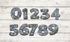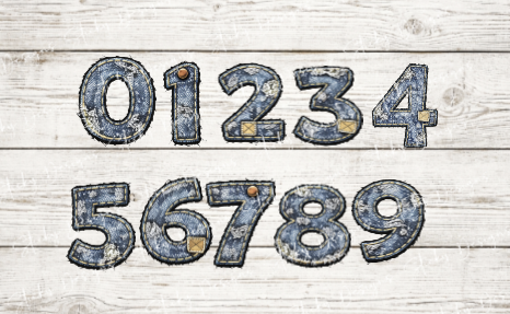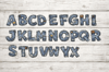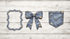 Rustic patch denim alphabet and numbers 0-9 with bow, border, pocket and blue stripe backing paper