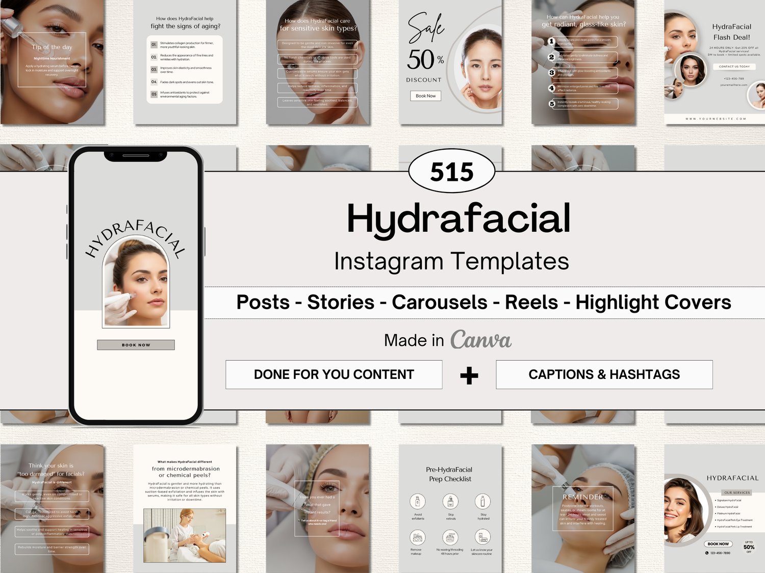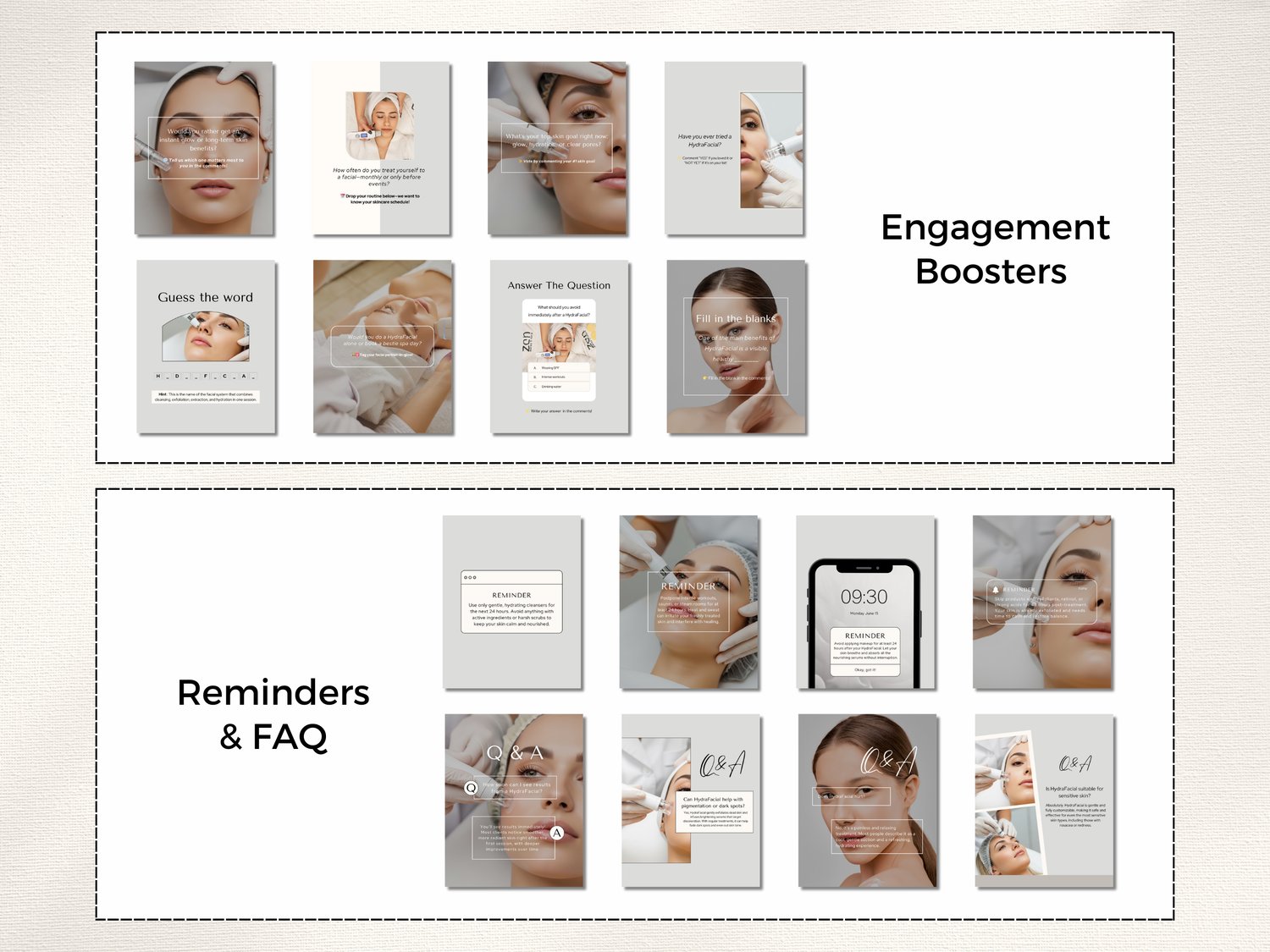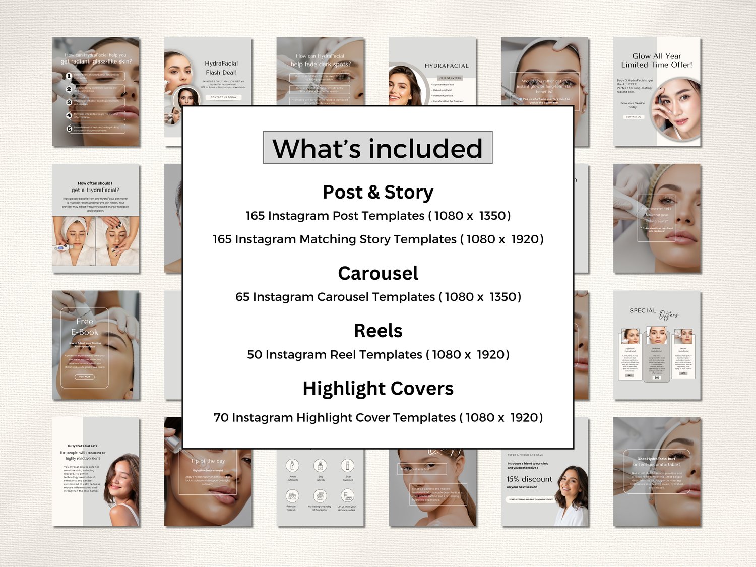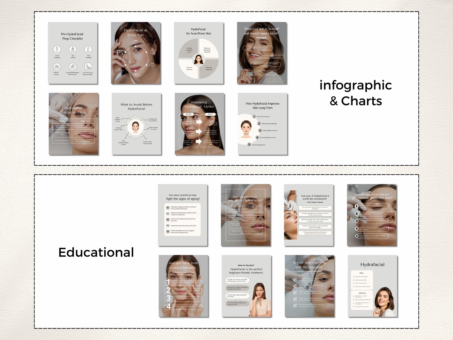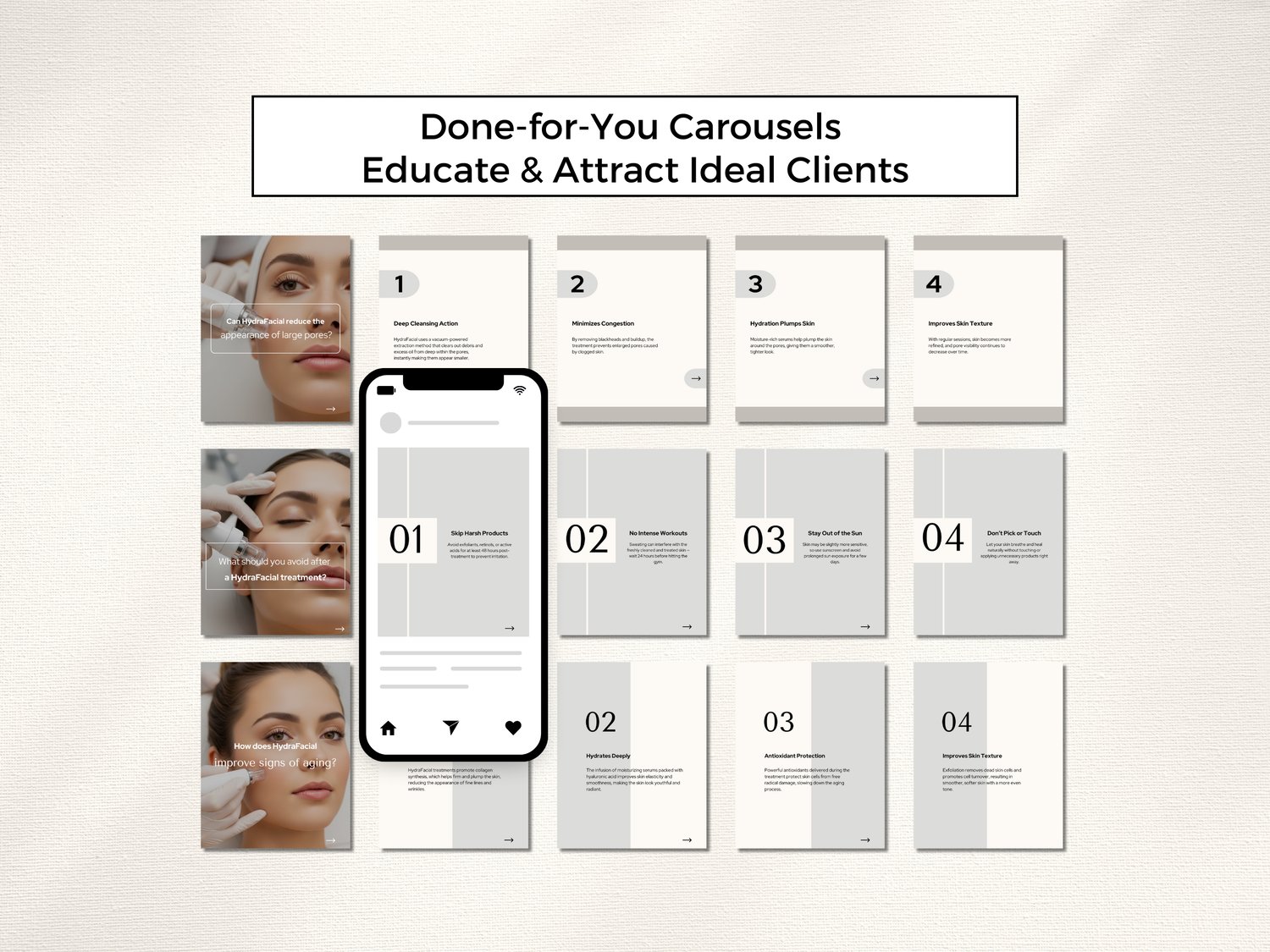 Showcase the benefits of HydraFacial and attract more clients effortlessly! These templates are designed for estheticians, med spas, and skincare professionals who want a professional Instagram presence without the stress of content creation. Ideal for educating clients, highlighting services, and boosting bookings while saving hours of work!