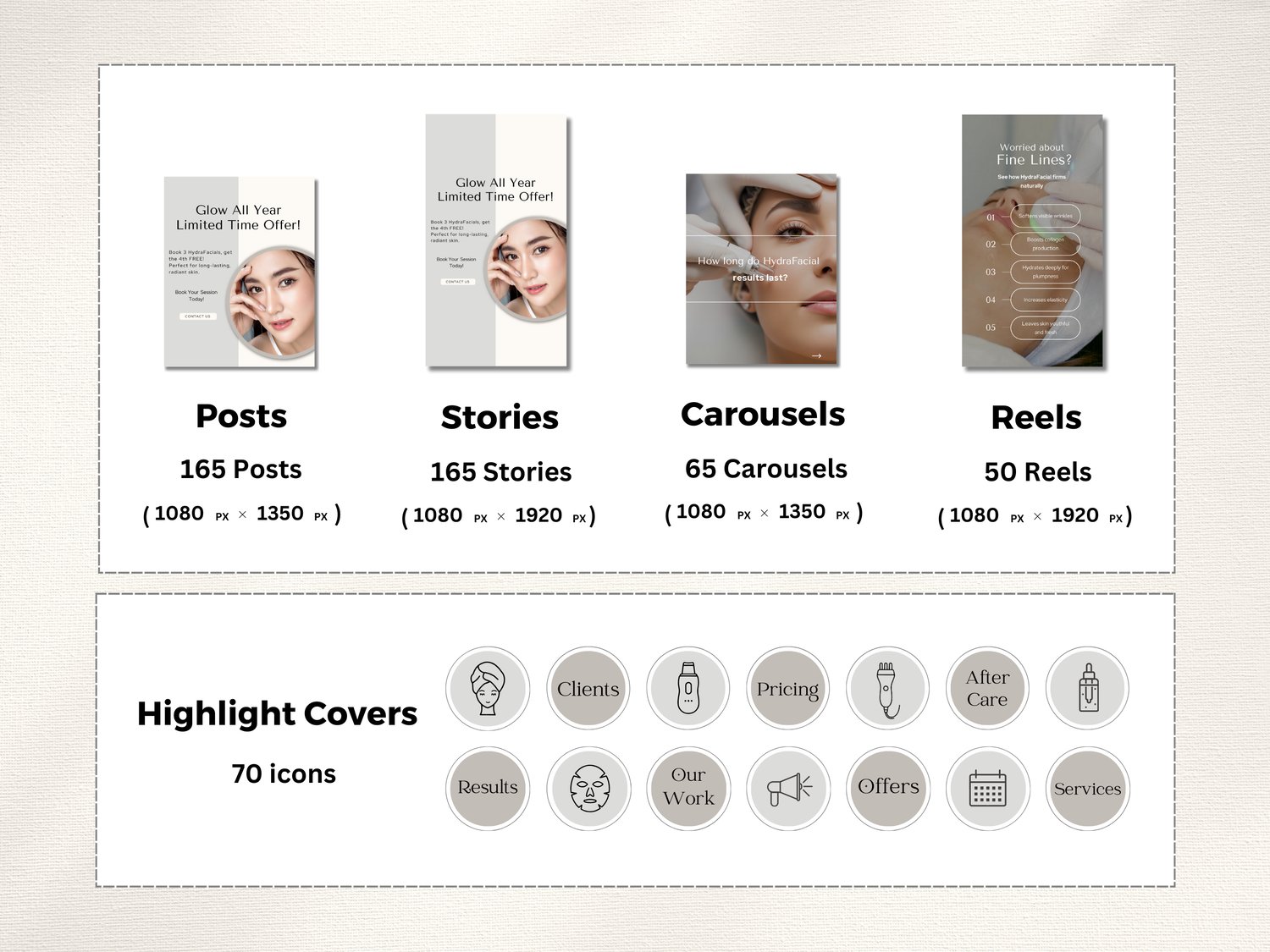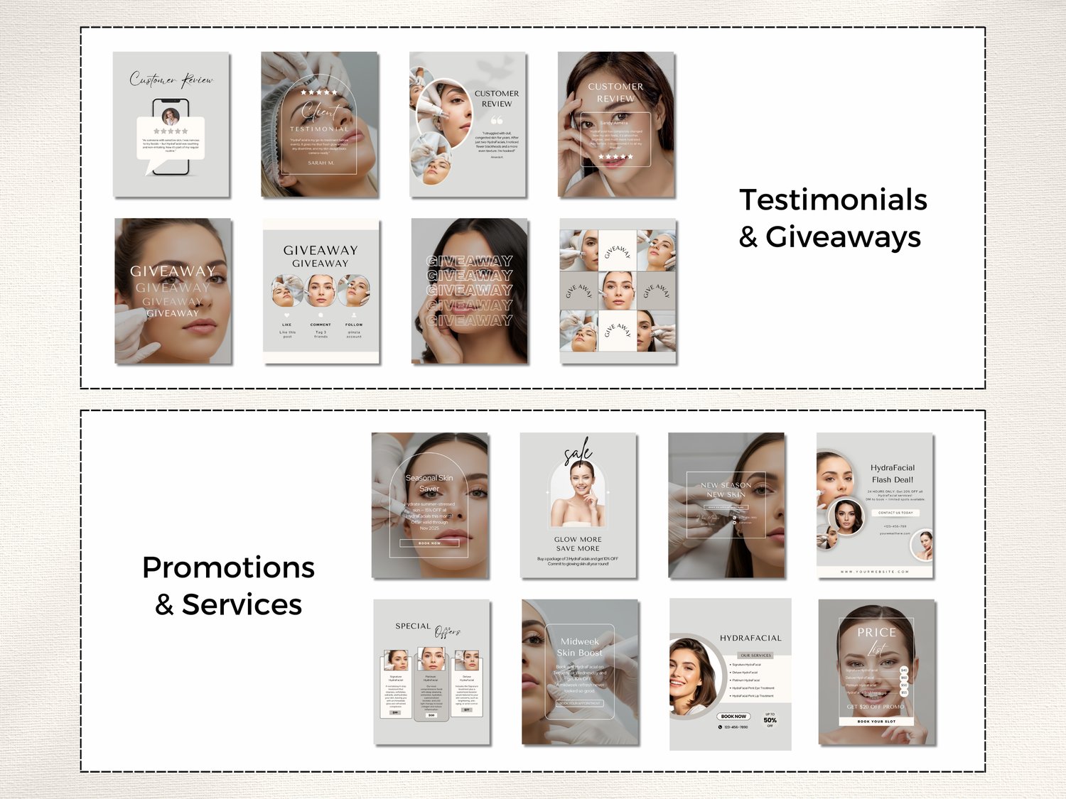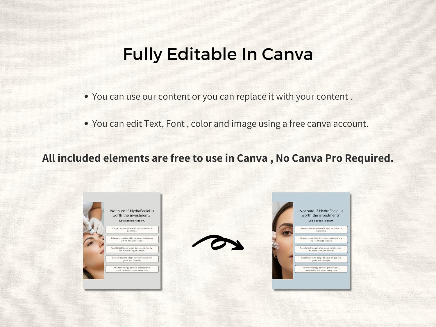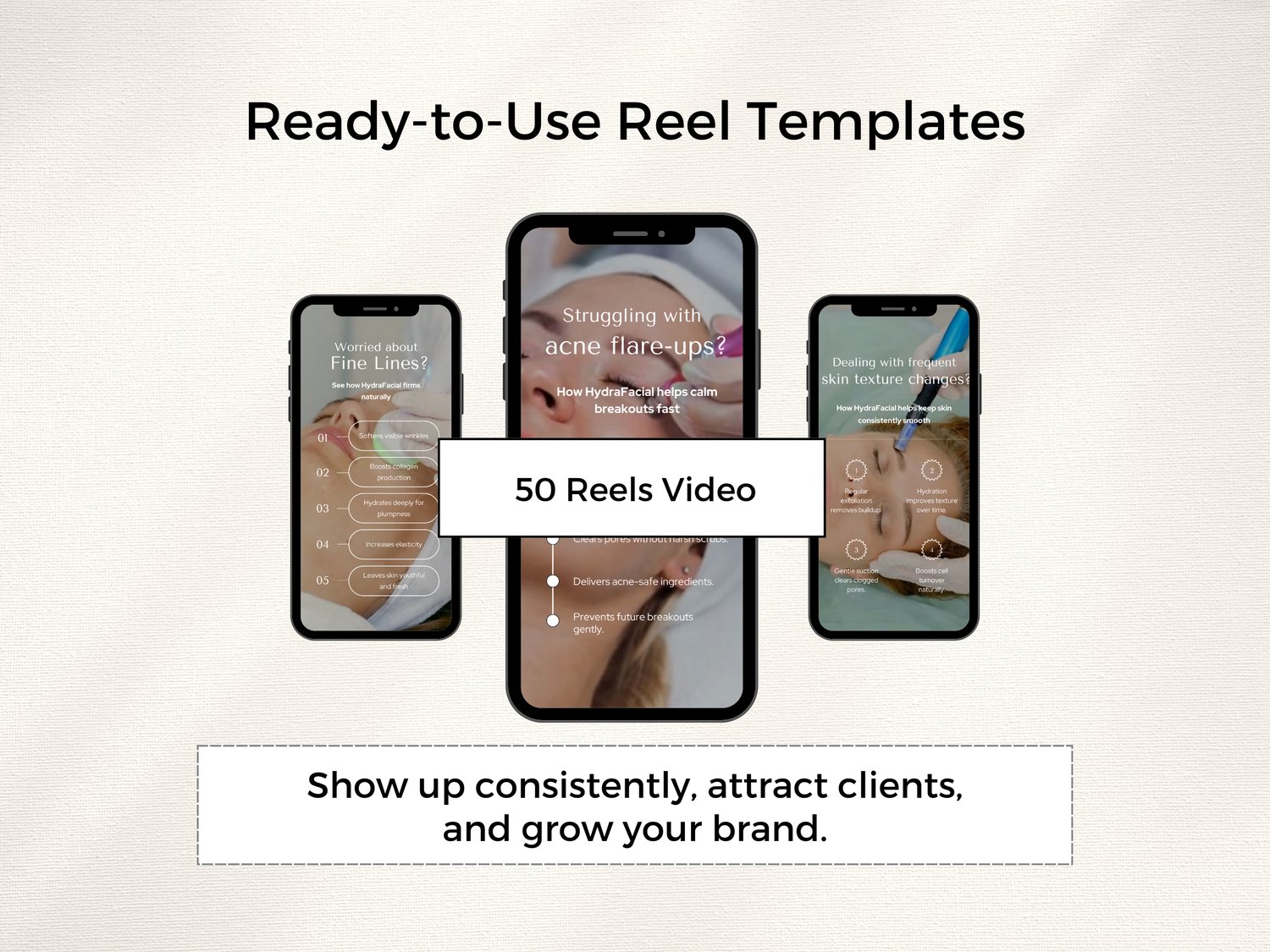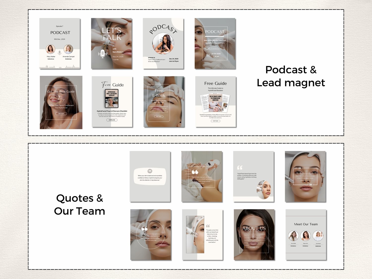 Showcase the benefits of HydraFacial and attract more clients effortlessly! These templates are designed for estheticians, med spas, and skincare professionals who want a professional Instagram presence without the stress of content creation. Ideal for educating clients, highlighting services, and boosting bookings while saving hours of work!