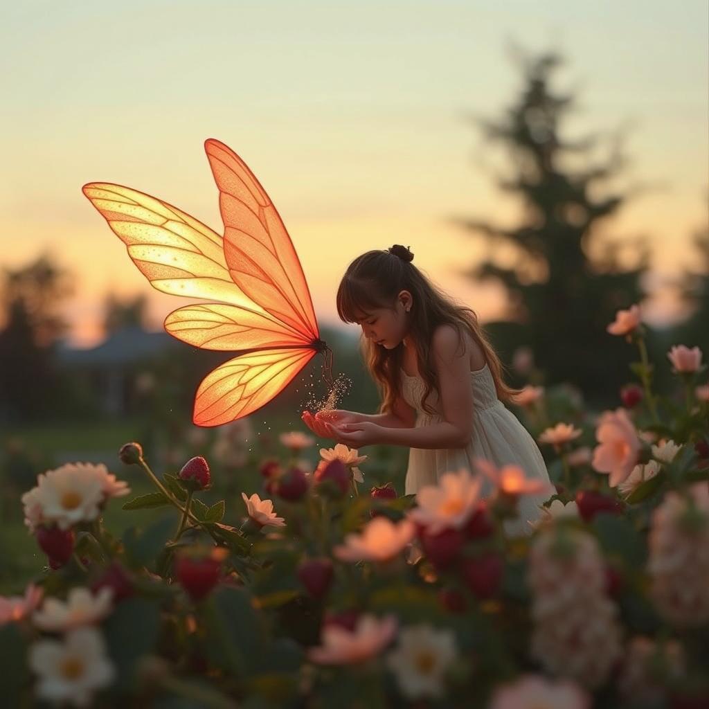 The fairy’s care for the strawberries turns an ordinary garden into a magical place, suggesting that sweetness and growth come from love, patience, and quiet dedication. Her glowing wings, soft voice, and shimmering dust symbolize hope, creativity, and the comfort found in believing in something gentle and good.