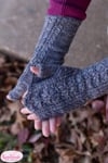 These elegant lace mitts, worked from the fingers to the wrist, come in two sizes and are easy to adjust in length.