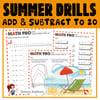 Summer Math Add and Subtract within 20 Activities