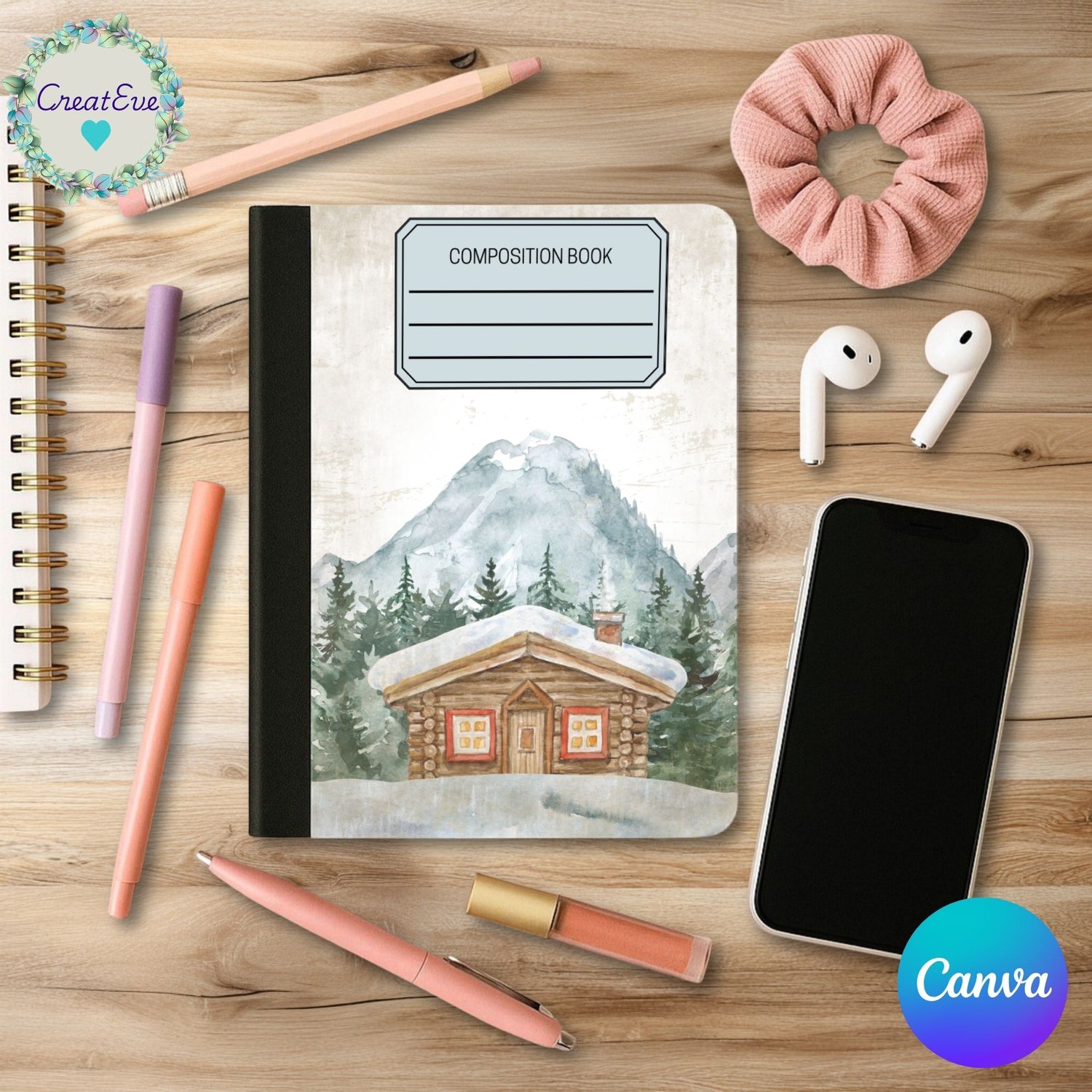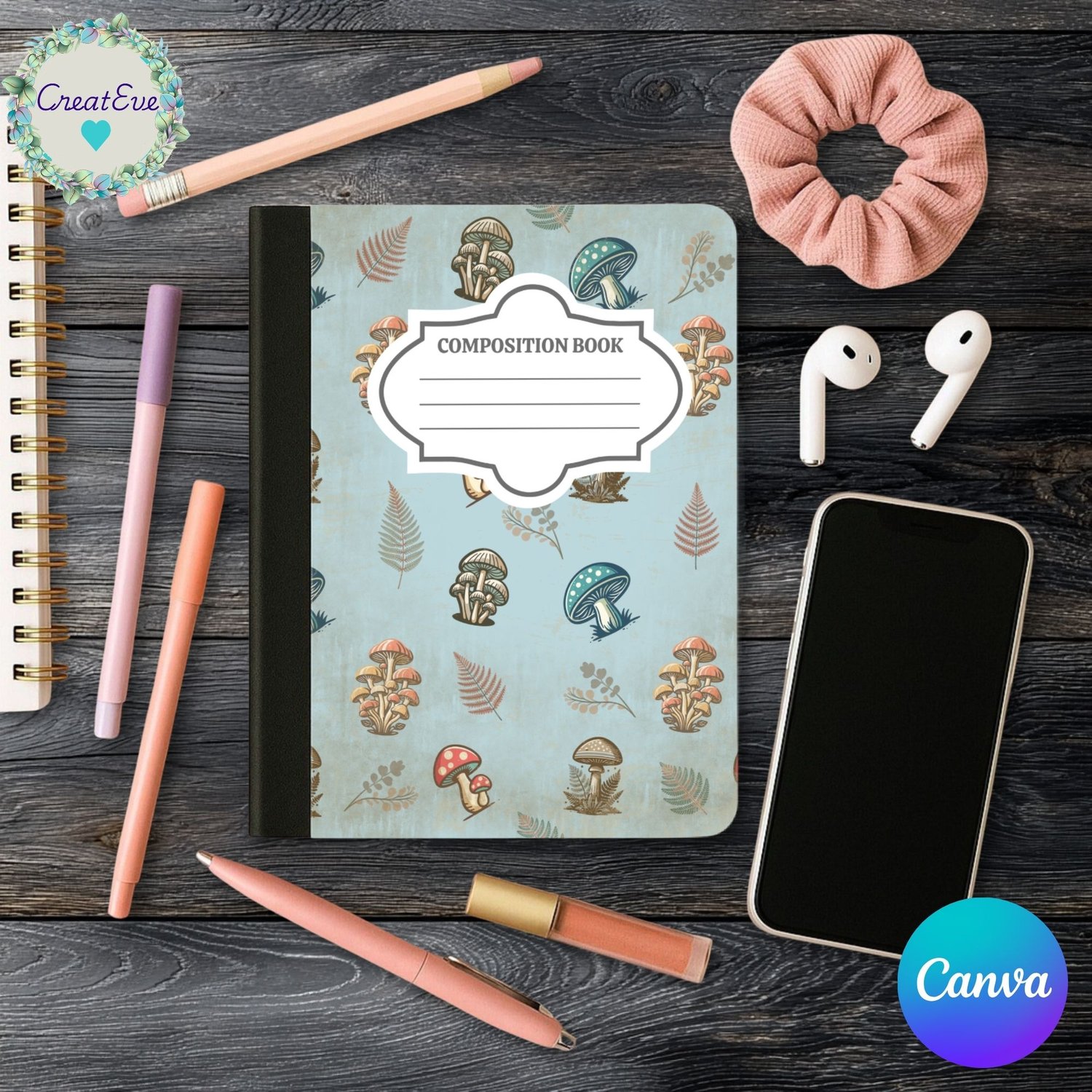 Woodland Cottagecore Composition Notebook Editable and Ready to Print PNG Bundle, 8.5" x 11", KDP & POD Use Included