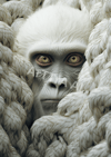 A majestic face of a white ape framed by delicate, swirling leaves. This extraordinary piece seamlessly merges the untamed spirit of the ape with the organic elegance of nature.