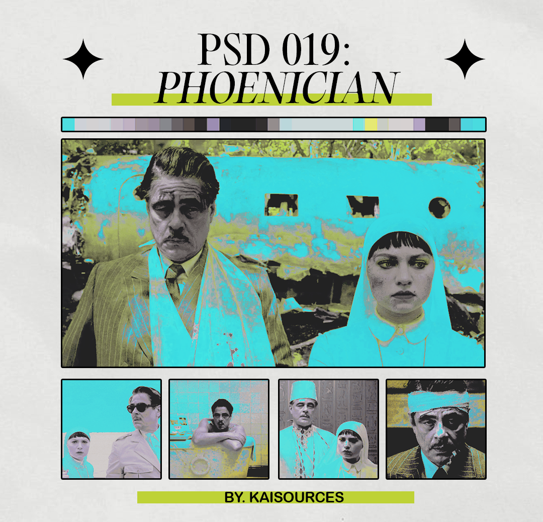 colouring inspired by THE PHOENICIAN SCHEME (2025). will change every colour to black and white - blue - yellow, electric colour do not claim / redestribute it on your own. previously known as kaiserscomms but kaisources is opening commissions as well!