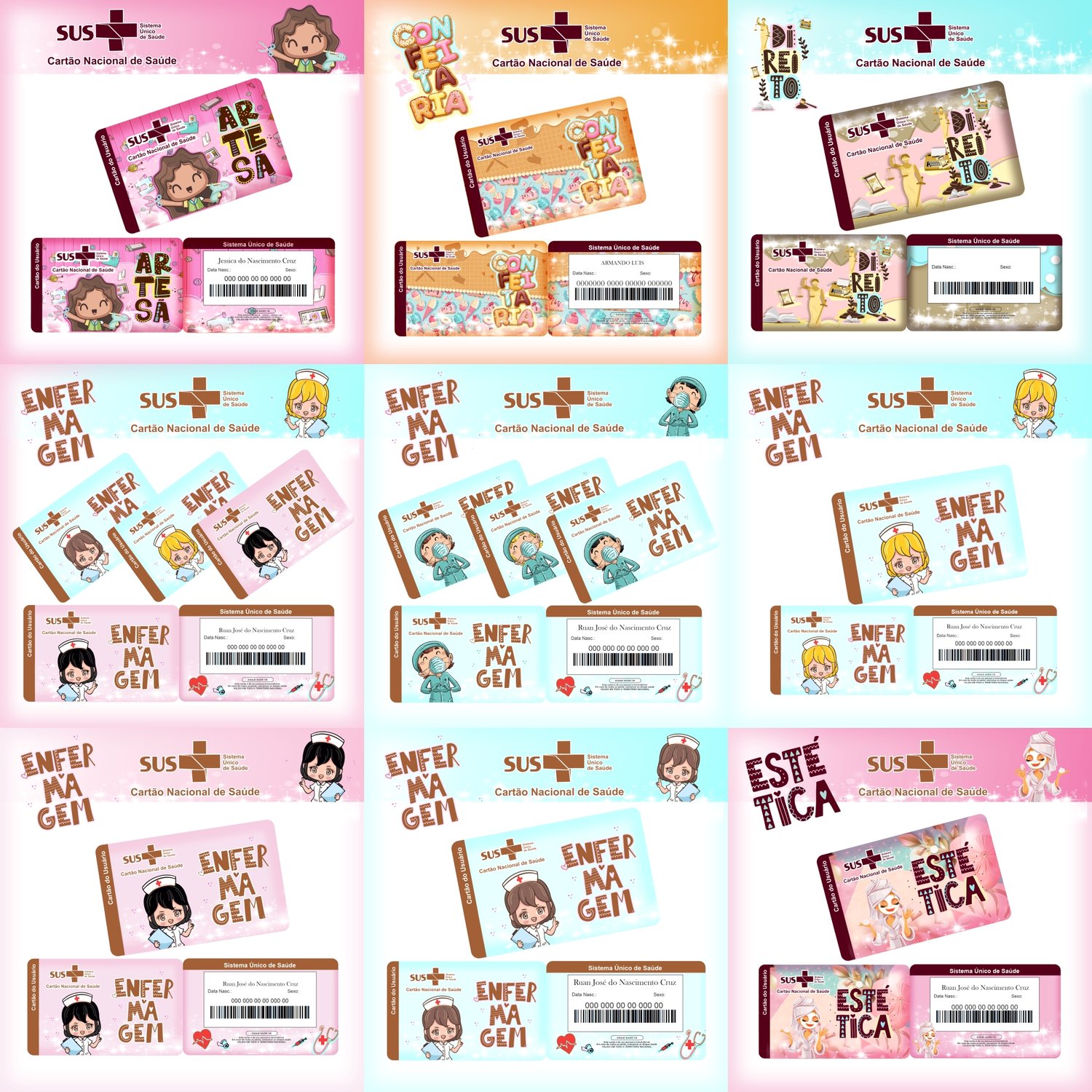 18 Artes para Cartão SUS Arquivo Profissões em Png
