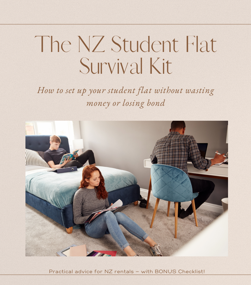 The NZ Student Flat Survival Kit shows you exactly how to set up a student flat properly, affordably, and rental-friendly — so you don’t waste money now or argue about bond later.