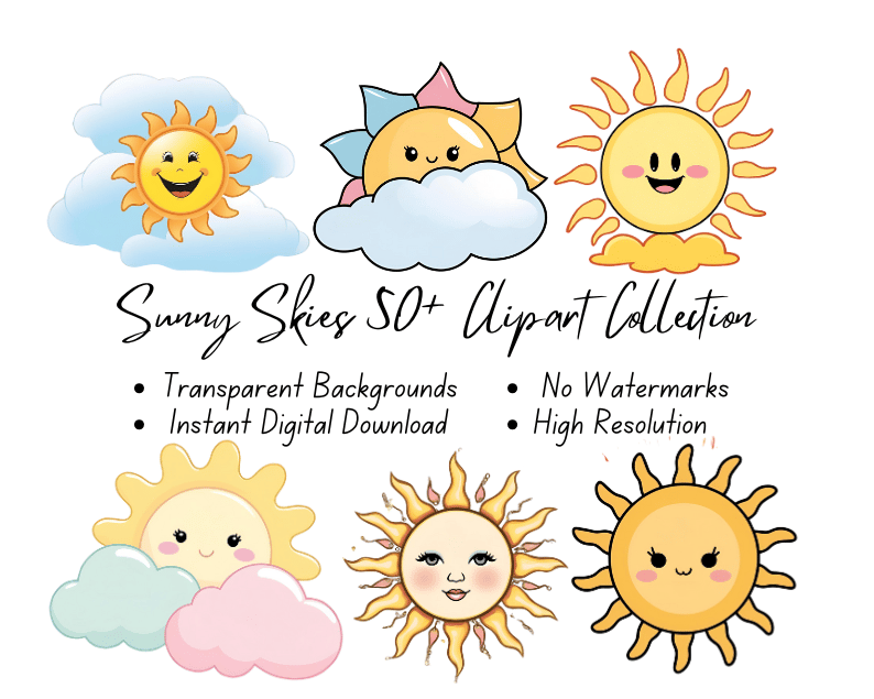 Sunny Skies 50+ Clipart Collection | High-Resolution Digital Printables | Instant Download | No Watermark
