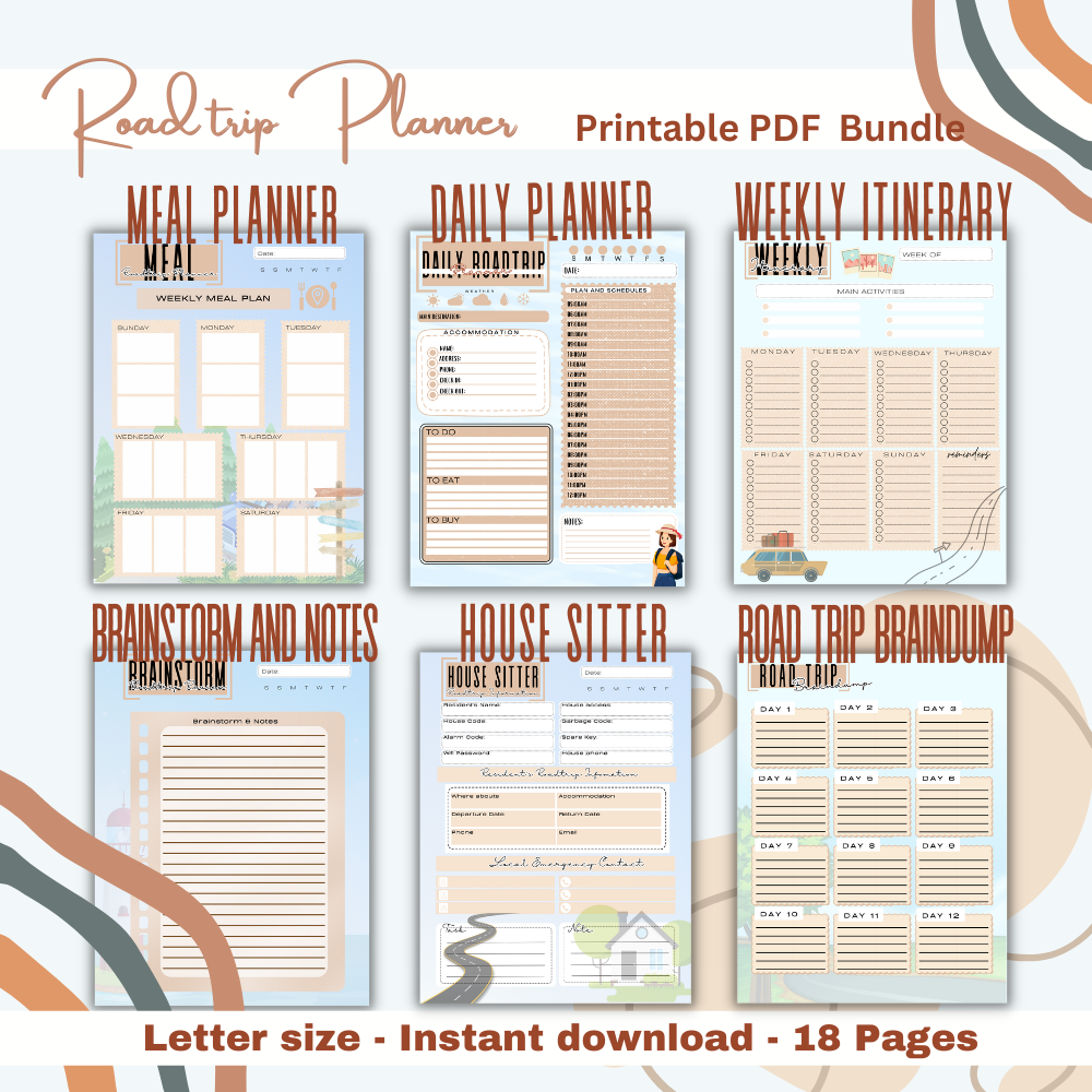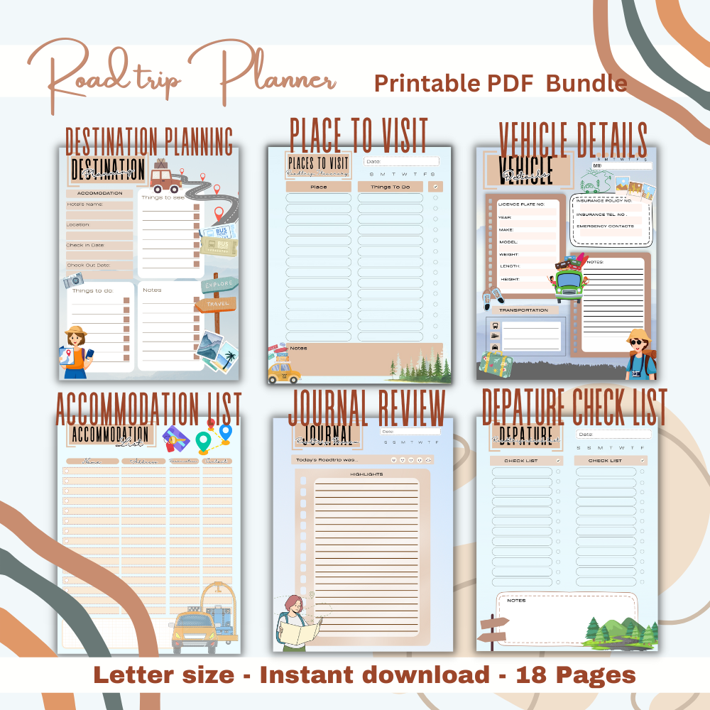 Best of all, this printable planner is customizable to fit your family's unique travel style! Whether you're heading to national parks, quirky roadside diners, or historical landmarks, our planner ensures that no detail is overlooked. So grab your favorite snacks, gather the kids, and get ready for a road trip experience that will spark joy and create lasting memories—one page at a time!