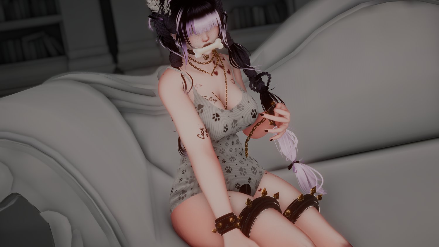 Heart tail, chains, leash, dogtag, pasties https://koragira.gumroad.com/l/idontthinkitwasworthit?layout=profile