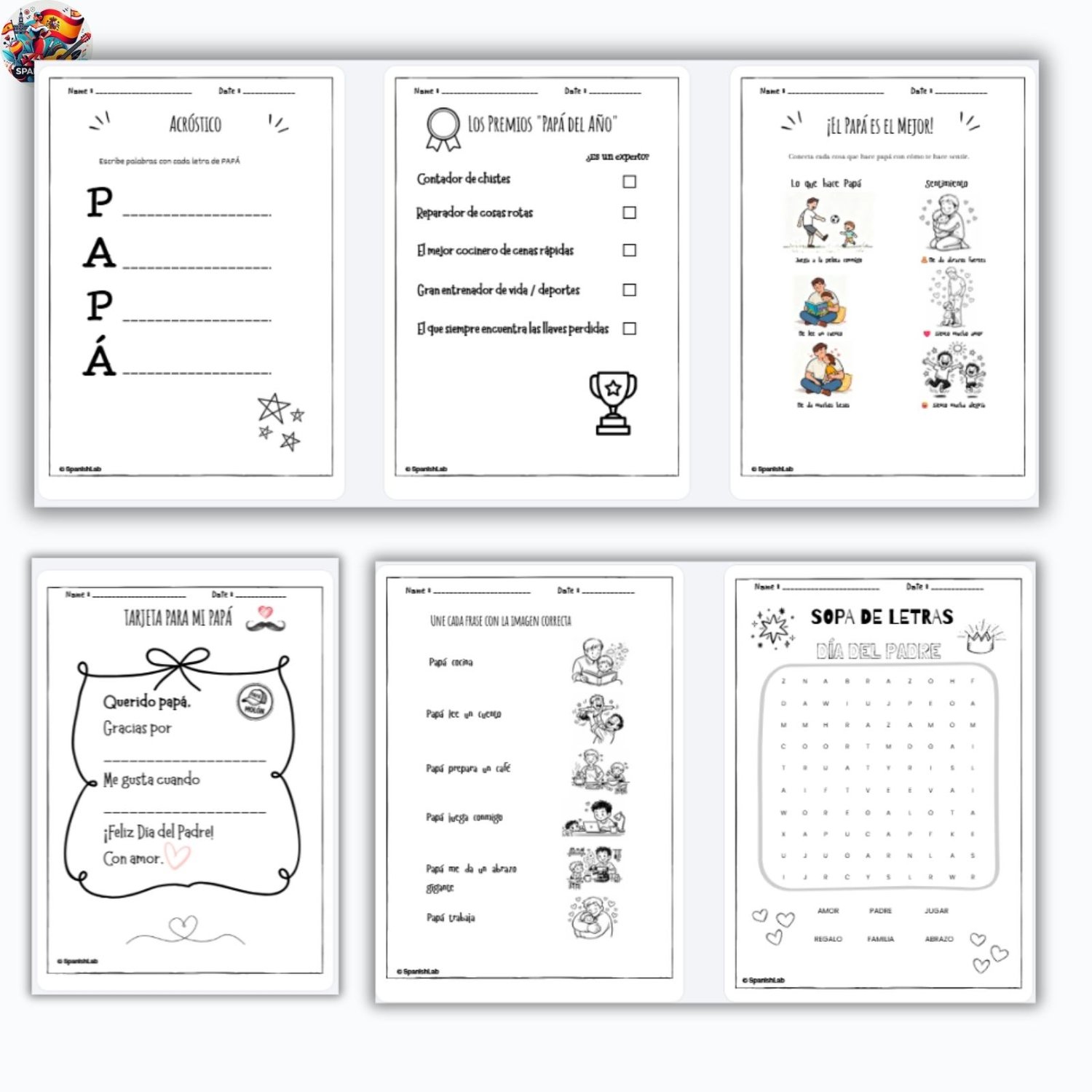 Spanish Father's Day Activities | Día del Padre Worksheets for 3 - 6 grades