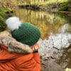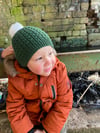 This beautiful beanie hat is worked in the round from the brim to the crown. It has a faux cable pattern that is created using yarnovers and slipped stitches.