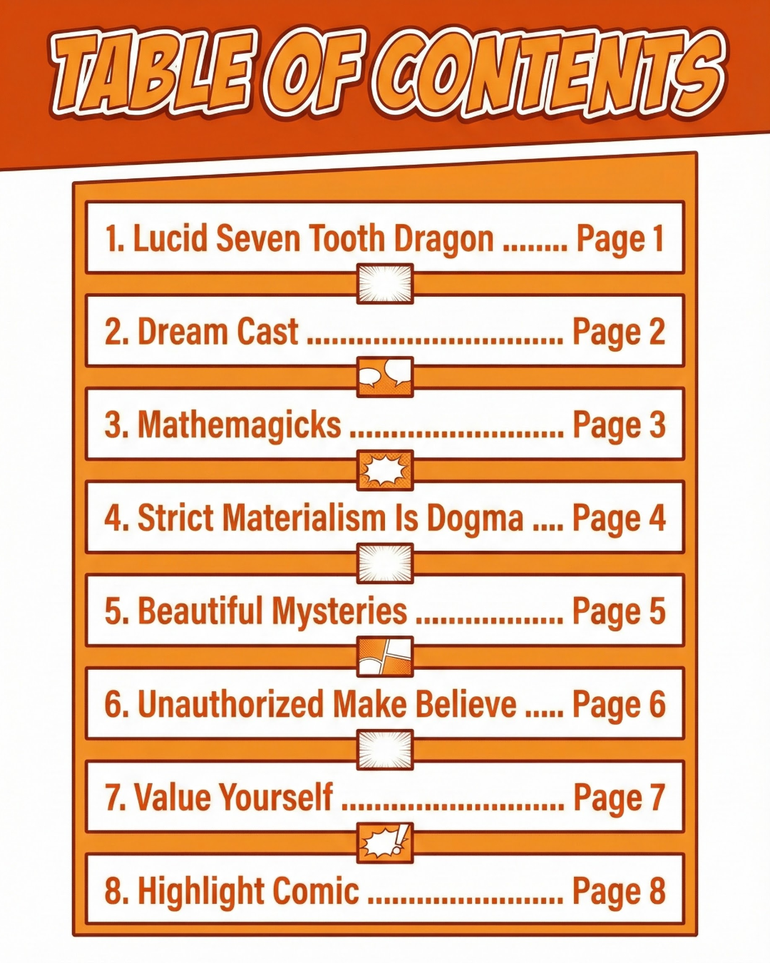 This is an anthology of 8 one-page comics, all created in a single day.