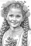 15 Grayscale Beautiful Little Girls with Flowers Coloring Pages Vol 5 | Printable Adult Coloring Pages | Download Grayscale Illustration