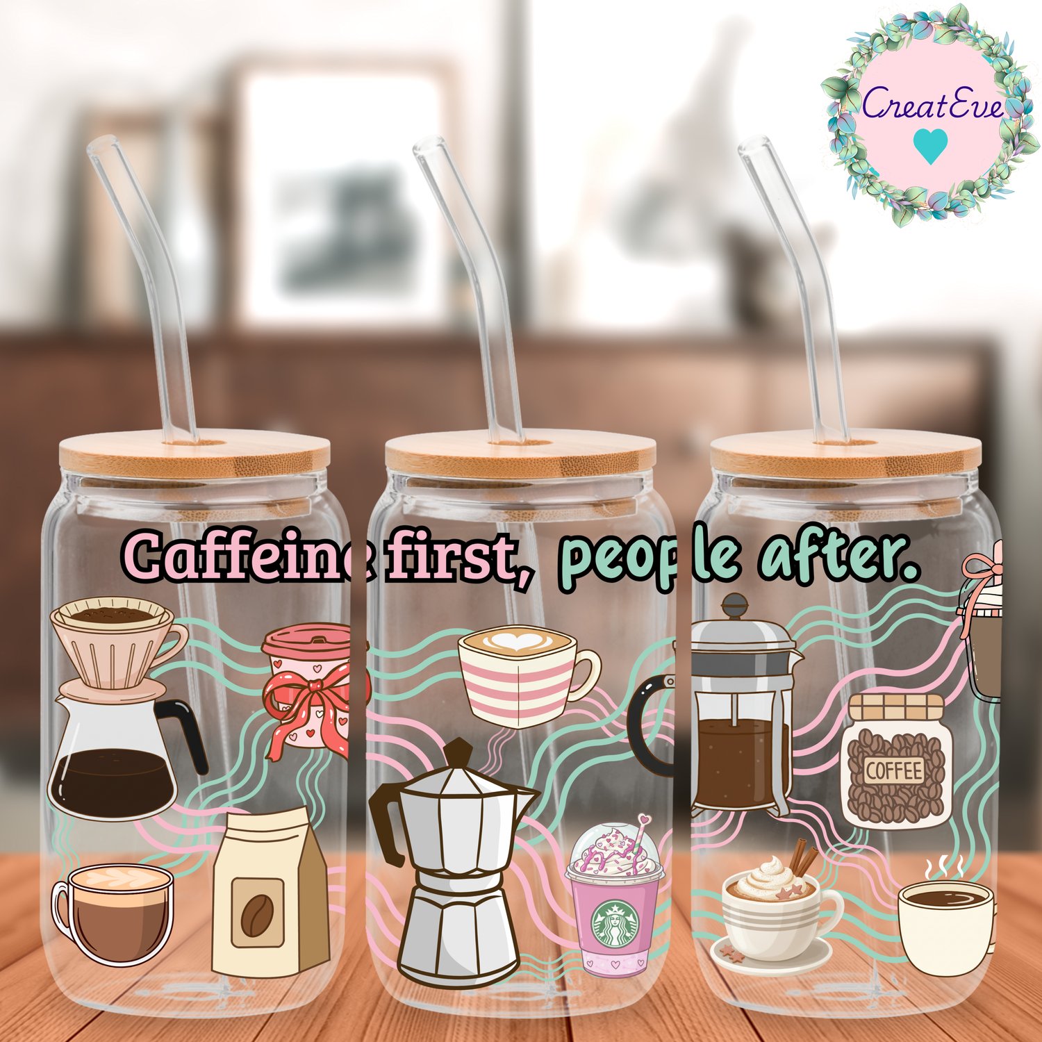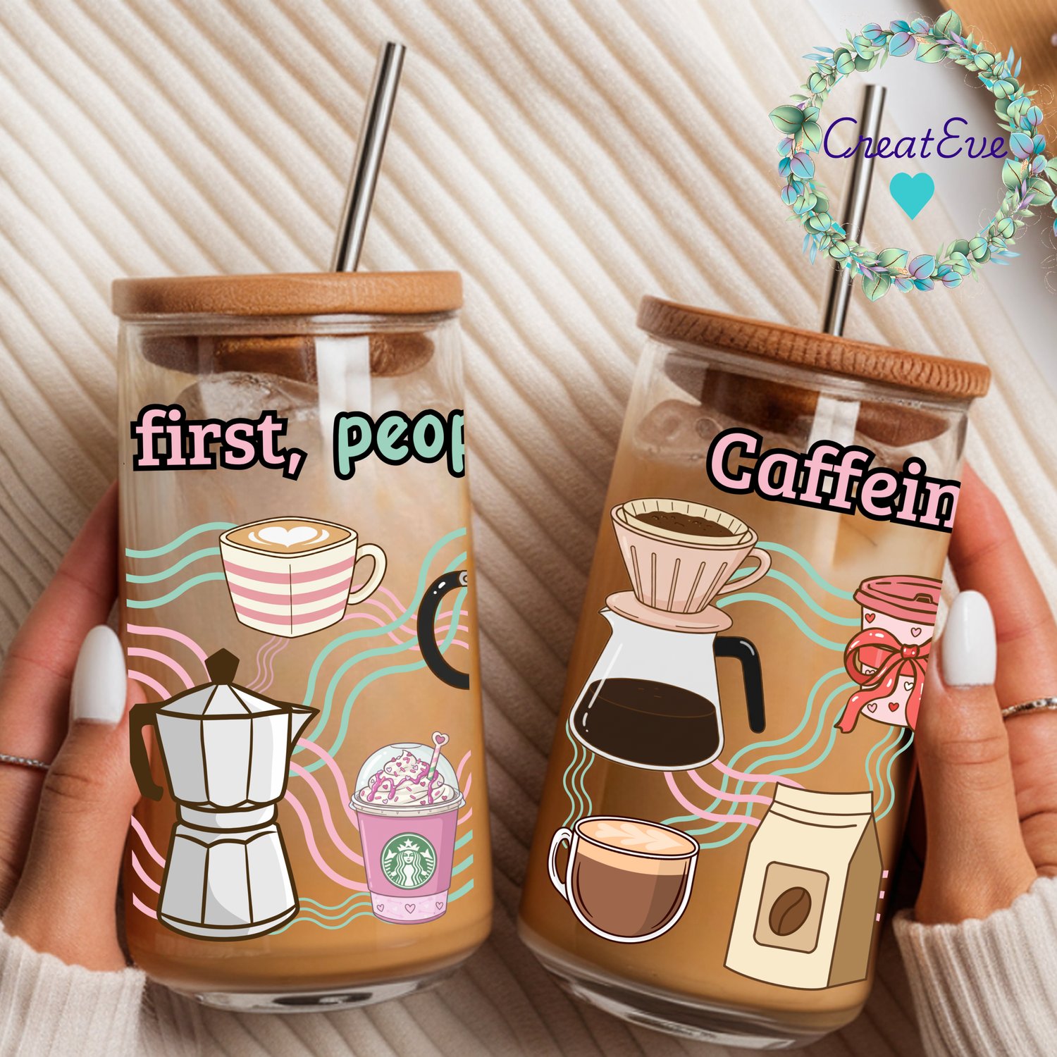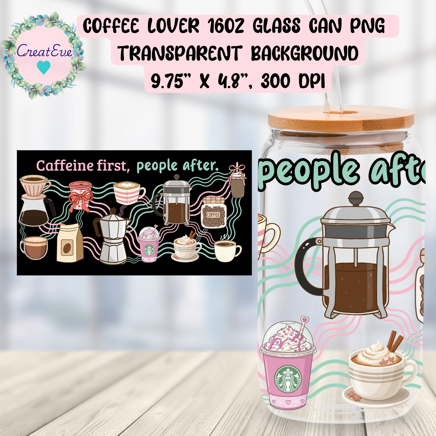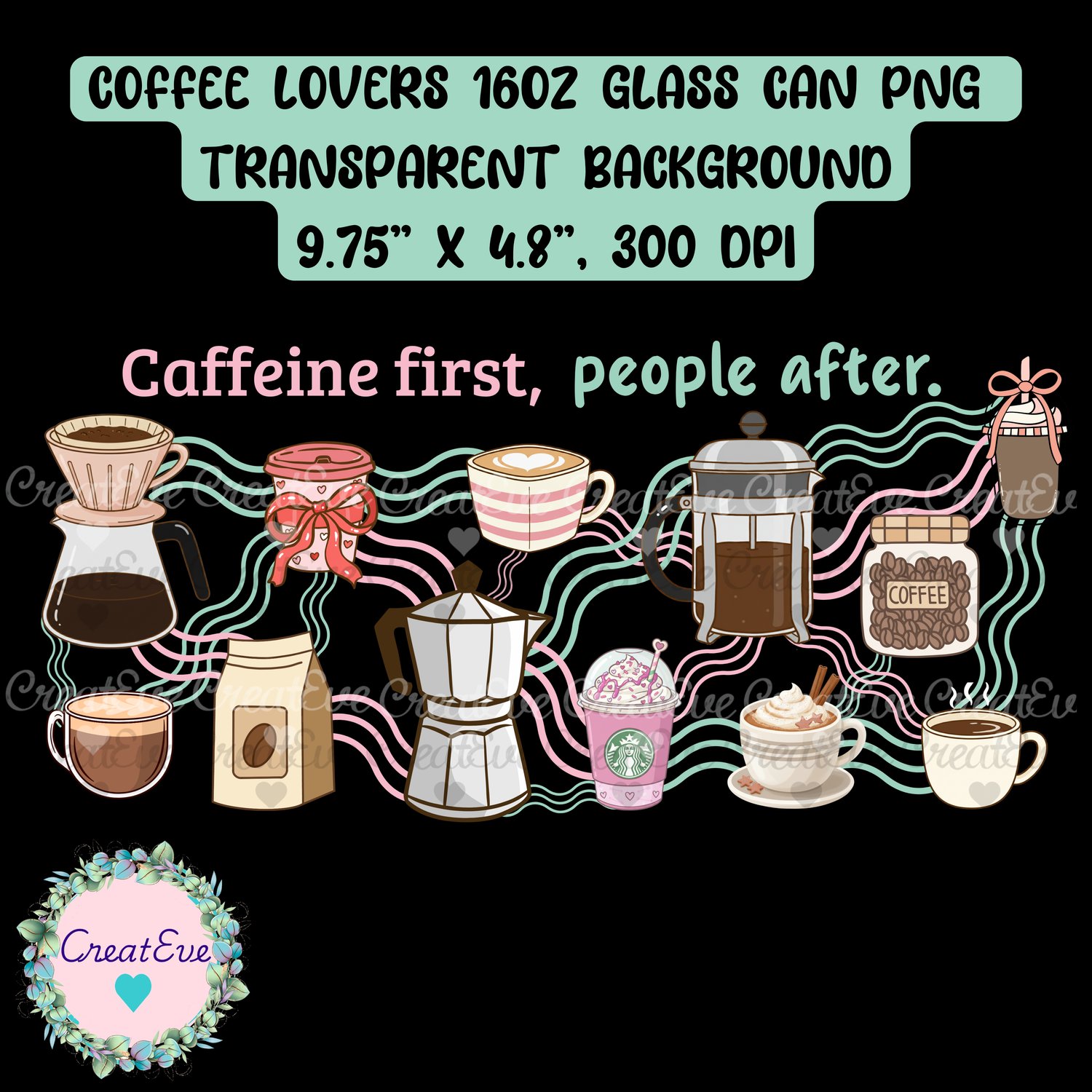Coffee Lovers 16oz Glass Can PNG, Transparent Backgound,, 9.75" x 4.8", 300dpi