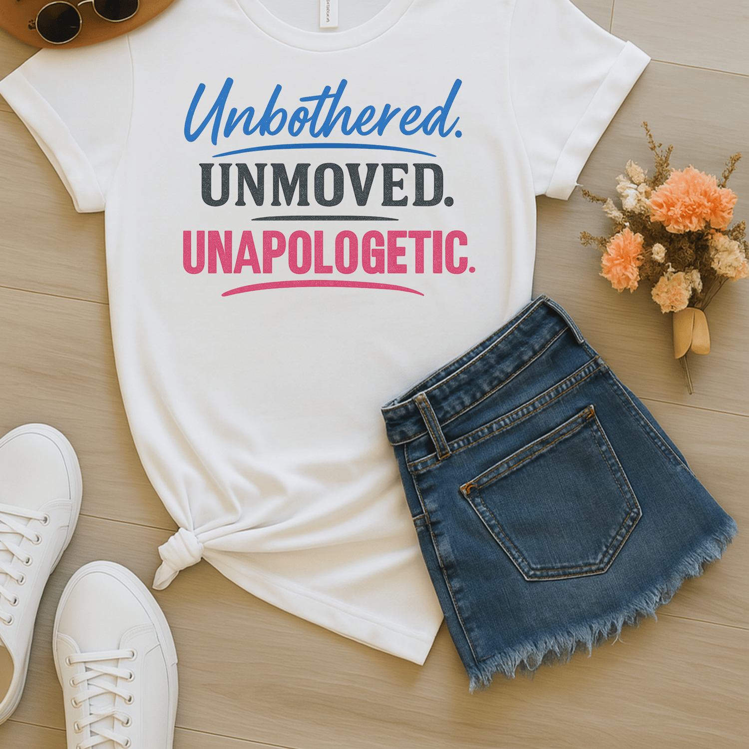 Unbothered Unmoved Unapologetic Glitter Text PNG | Digital Shirt Design | Confident Quote | Instant Download Sublimation Design
