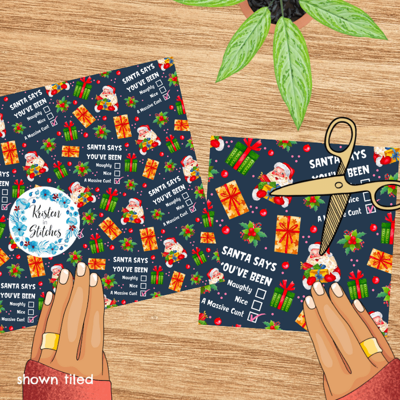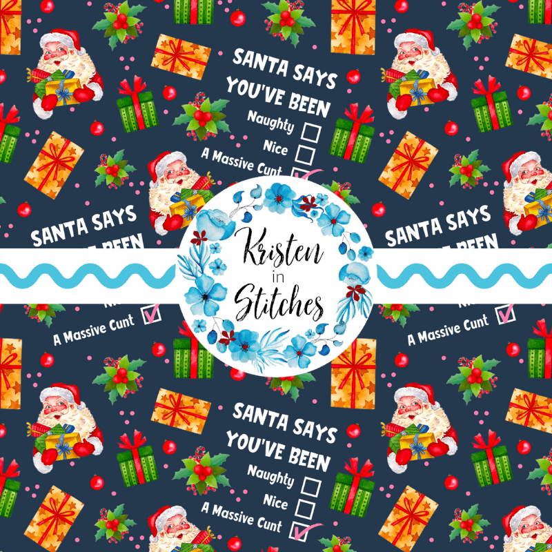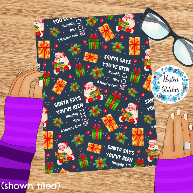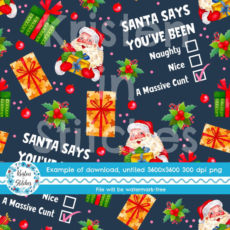 Santa Says You're a Cunt Sarcastic Sweary Christmas Seamless Pattern, Naughty or Nice