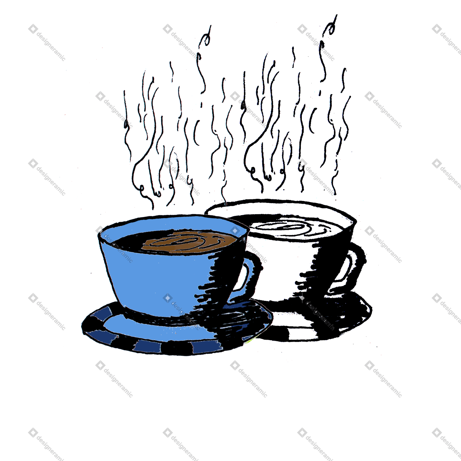 Cartoonish mugs (1 sketched and 1 colored) that can be used as an icon or a graphic resource for all sorts of applications.