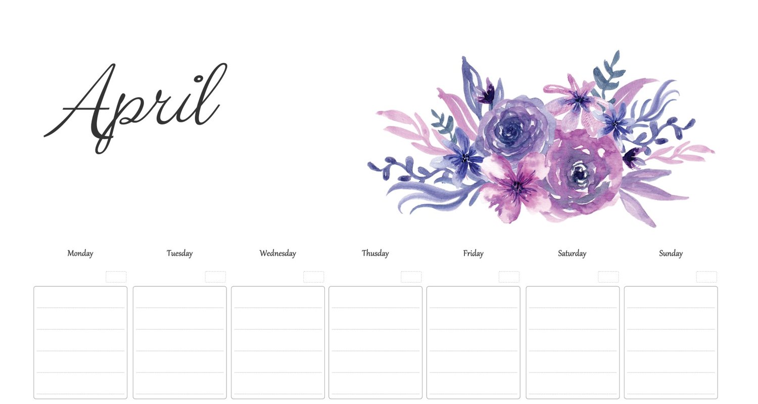 Calendar Printable, Desk Calendar Monthly, Flowers Watercolor, Botanical Floral Wall, PDF, Letter Size, 12 pages, Elegant Pretty Lines