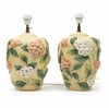 Gorgeous Rare Ceramic/table lamps in polychrome barbotine (thick slip-paint relief) decorated with hydrangea motifs in pinks, purples and greens; signed “Chaumette Paris.” Dimensions: 40x24x1 cm. Good vintage condition. Additional up-to-date photos and details available upon request. Vintage items may show light signs of wear due to their age.