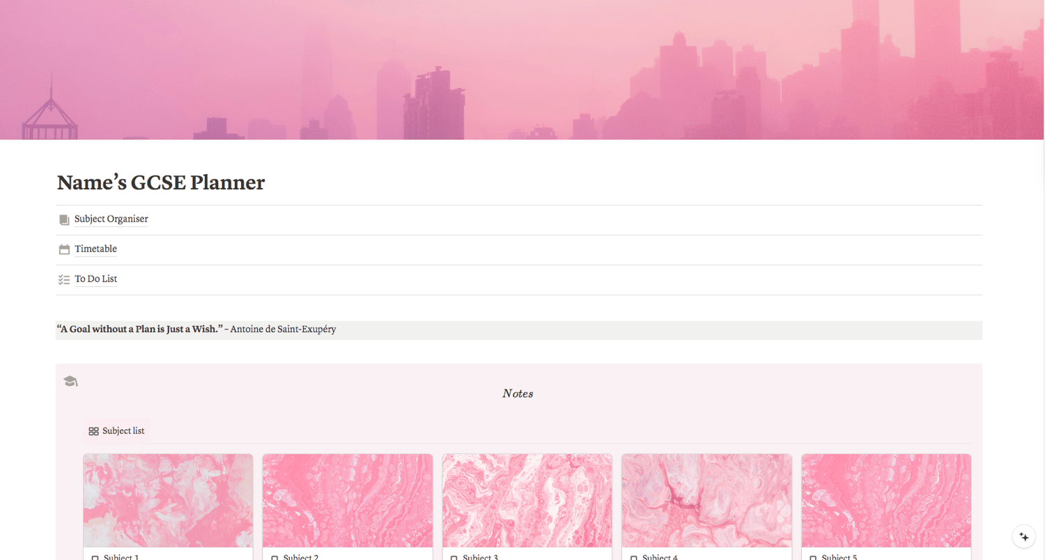 - A dedicated page for each of your subjects to contain your notes, eliminating the chaotic disorganised notes holding you back from your full potential