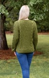 I love cables! I love figuring out which cables play well together, and I'm really pleased with how Aberdeen turned out. The sweater is worked from the bottom up in pieces, then sewn together. The center cable is from Norah Gaughan's "Knitted Cable Sourcebook" and looks more complicated than it is. The stitch patterns are presented in both written and charted formats, but for working the sleeves, the patterns are combined into one chart, and you will need to refer to the sleeve chart to determine where to begin and end the sleeve for your size.