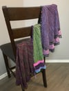 You'll need 2 1/2 skeins of yarn, and there is a color story page with ideas for picking the scheme for your ensemble. You can also add beads to the edge for extra flare!