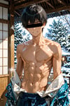 日本の正月をテーマに、着物を着用している男性を、キャラクターごとにお任せ作成しました。男らしいキャラクターの魅力を思い切って表現しました。