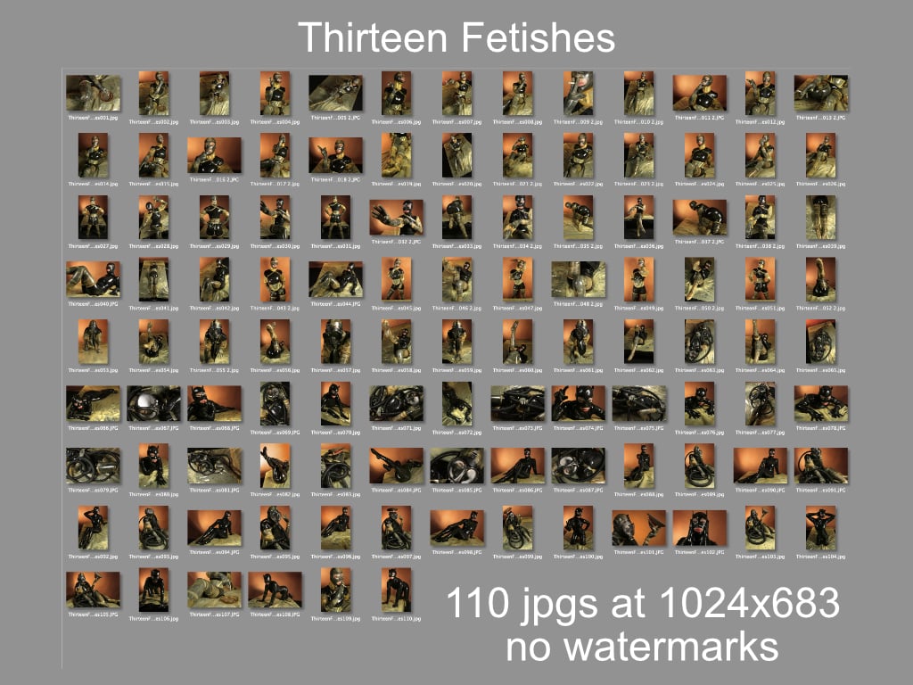"Thirteen Fetishes"- 110 images at 1024x683 resolution, watermark free. No nudity. Copyright 2007.