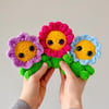 The Flower Baby is a bright and happy amigurumi doll pattern that works up quickly and easily with plush yarn! This low-sew crochet pattern only requires sewing the head to the body; everything else is no-sew. There are 3 different petal variations available to choose from. This sweet flower has a chubby, little body with short arms and legs, and blossom petals framing her sweet face. The back of the head is in a different color from the face, making her look presentable from the back view as well! This Flower Baby makes a colorful addition to Easter baskets, Spring or Summer craft fairs and markets, and sympathy gift. It’s also perfect for occasions like Valentine’s Day, Mother’s Day, Teacher Appreciation, birthdays, and more. The PDF pattern includes progress photos as part of a detailed photo tutorial to help guide you through the doll-making process.