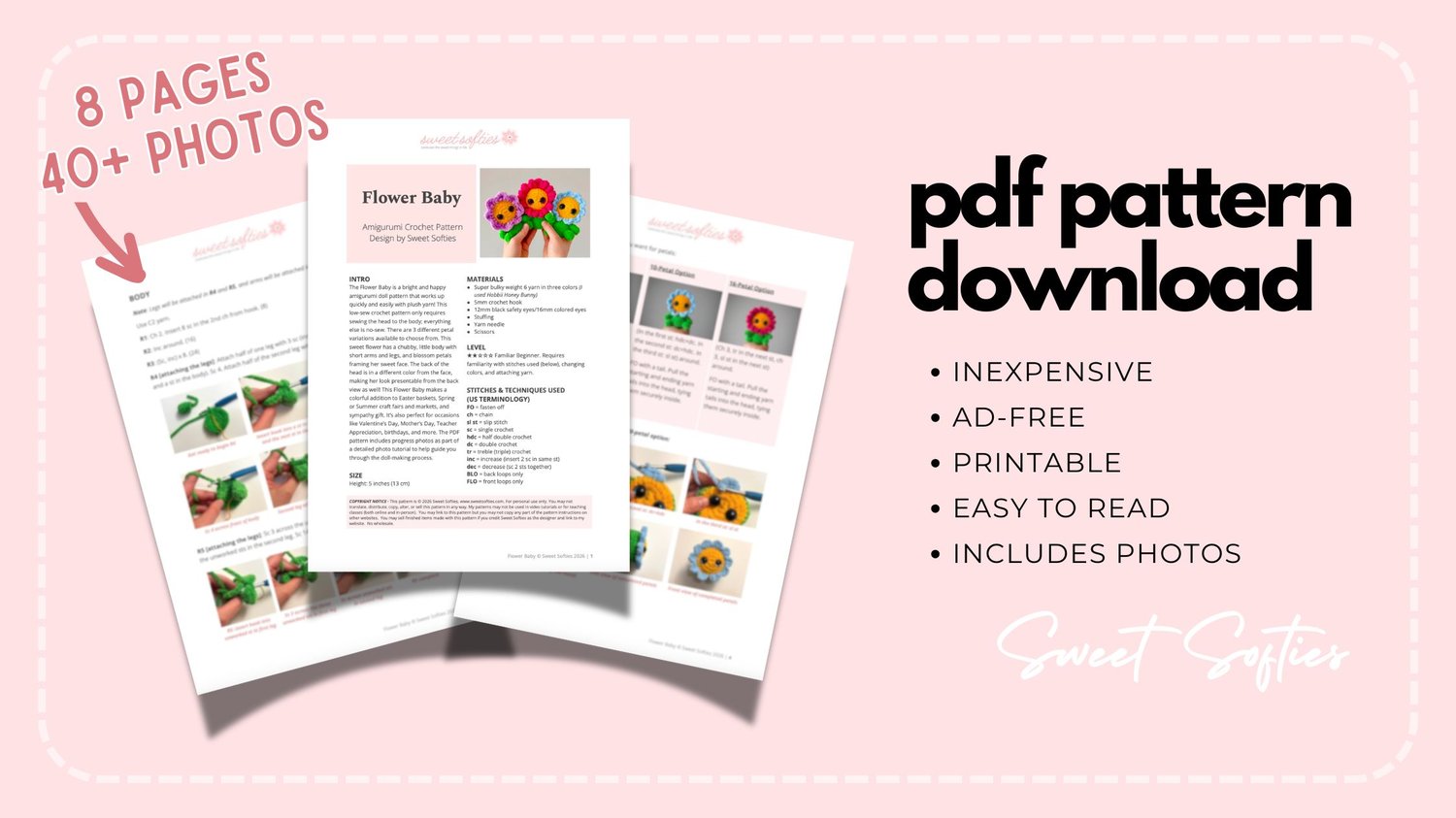 Free version of the pattern (video tutorial) available at: https://www.sweetsofties.com/2026/03/flower-baby.html