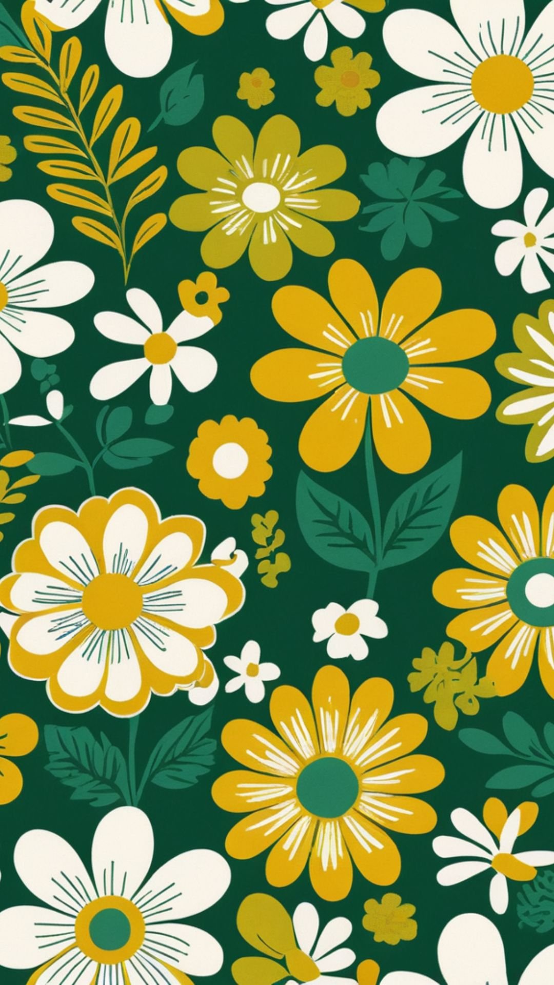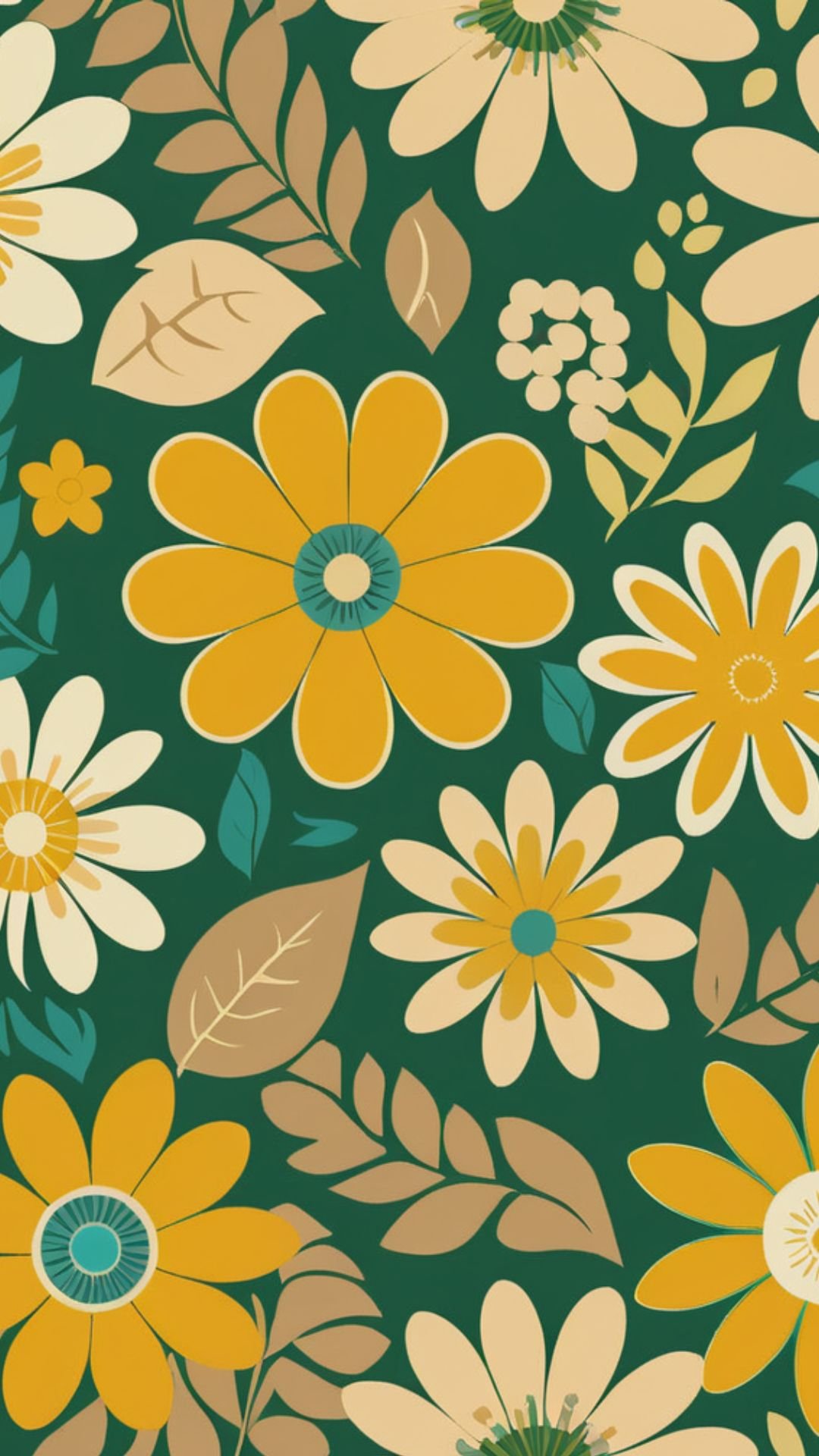 RETRO FLOWERS 6 PHONE DIGITAL WALLPAPER 1080X1920