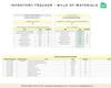 • 7 Spreadsheet Tabs: Inventory, Purchases, Sales, Manufacture, Bill of Materials, Suppliers