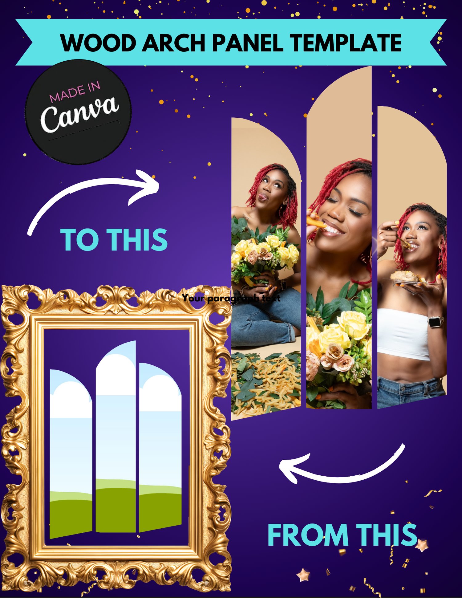 Showcase your designs professionally with this Wood Arch Panel Mockup Template, created for Canva. This mockup is perfect for designers, crafters, and small business owners who want to present their artwork, event designs, or branding on realistic wood arch panels.