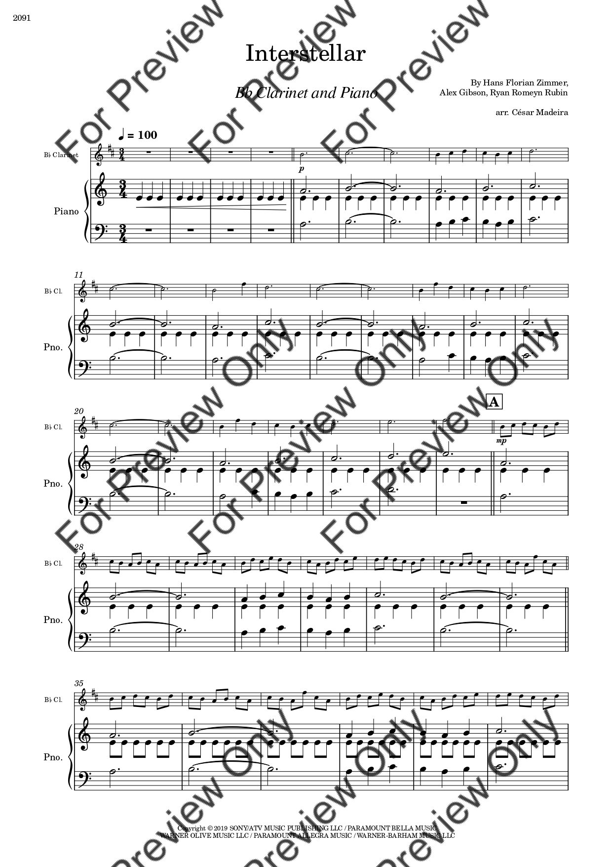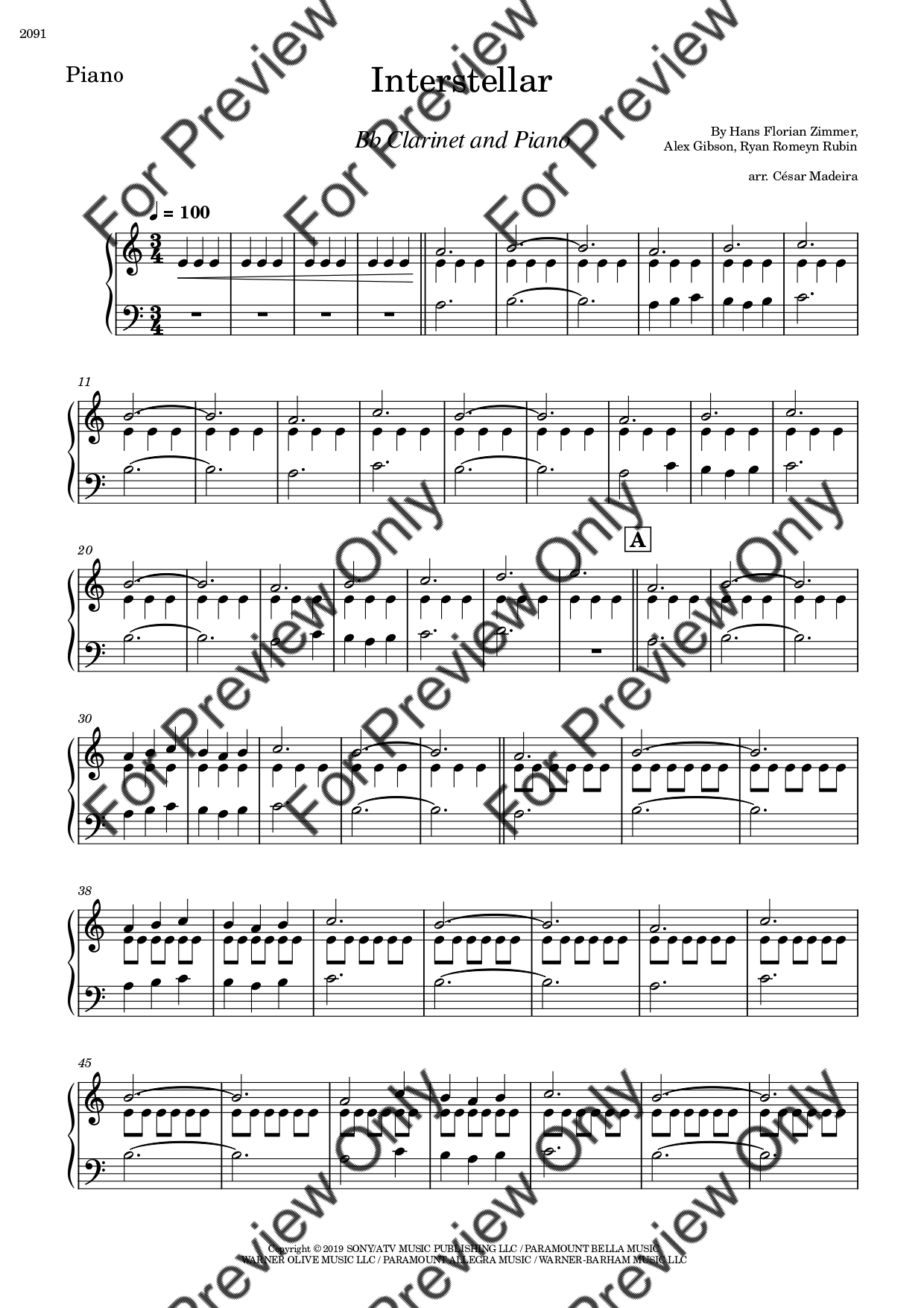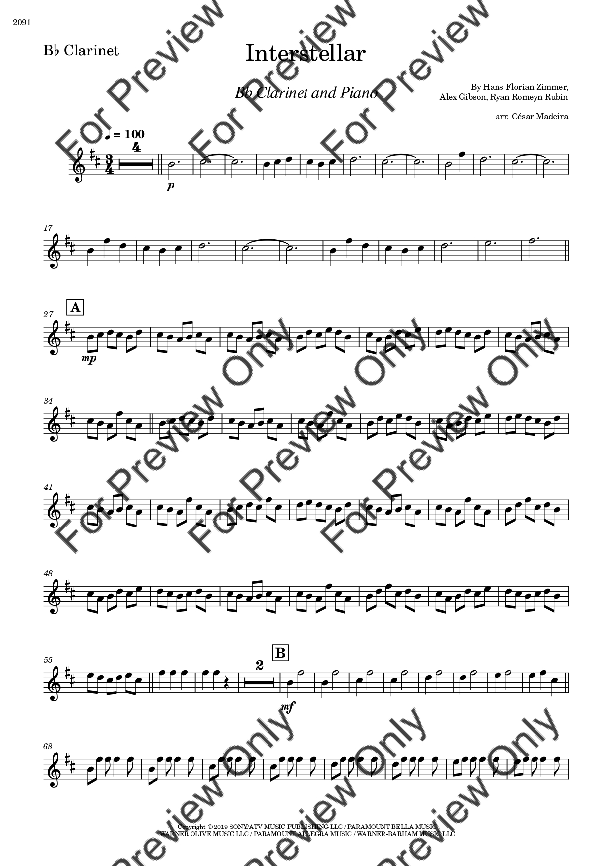 Interstellar Main Theme by Hans Zimmer. Arrangement for Bb Clarinet and Piano. With Full Score and Individual Parts. Have fun!