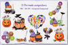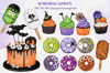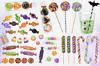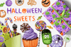 This "Halloween sweets" clipart collection includes a variety of colorful and spooky sweets and candy illustrations, compositions and patterns.