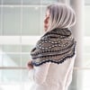 Fluxus has an easy to wear shape and is finished with an elegant scalloped edge, that echoes the slipstitch shapes and highlights the wavy border of the shawl.