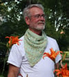 30 Rising Suns Cowl is a unisex design with lots of texture that only requires one skein of DK yarn. Simple lace and stripes of garter stitch make this cowl a quick and enjoyable knit. Although it starts off flat, you’ll have the choice to finish it in the round or flat with a seamed neck edge.