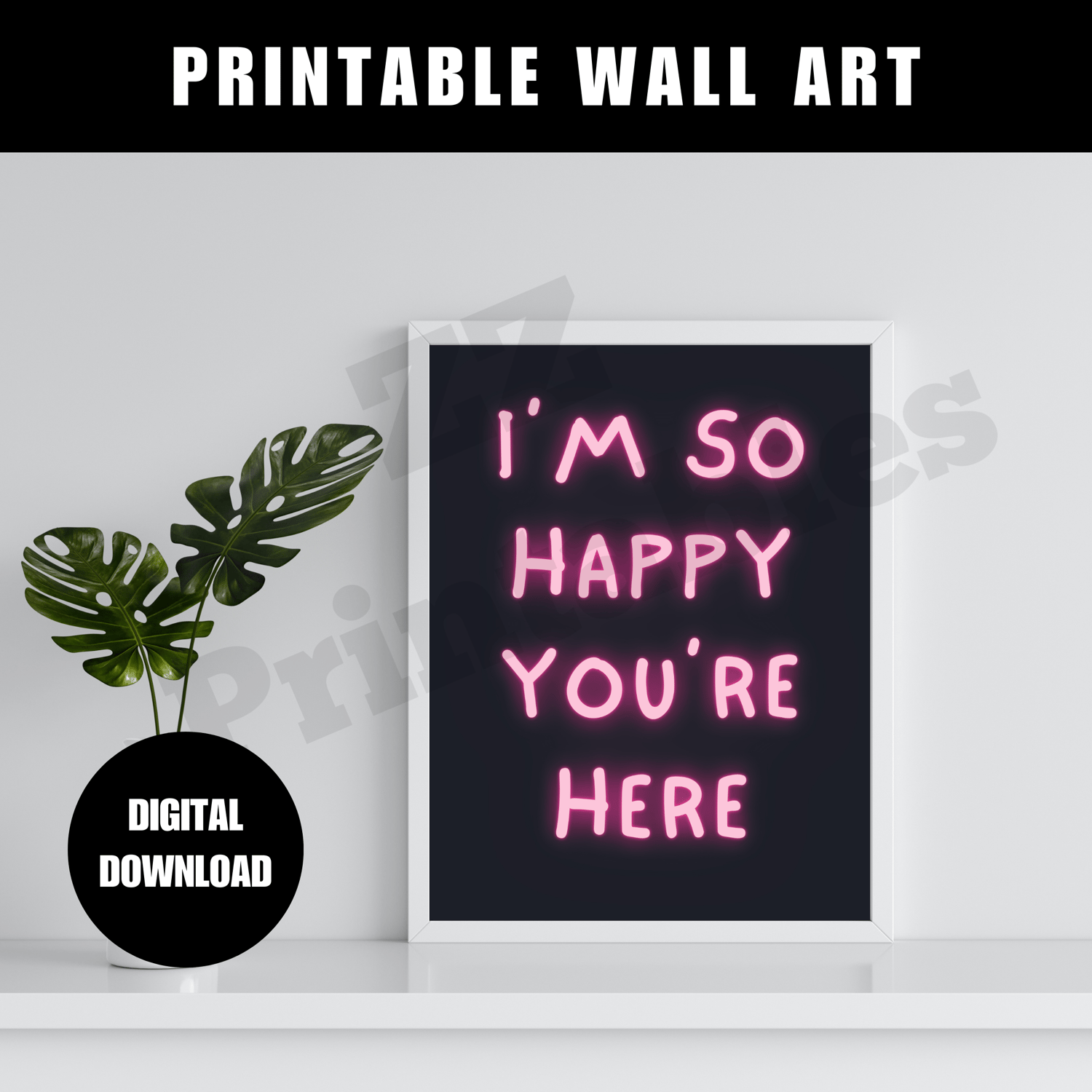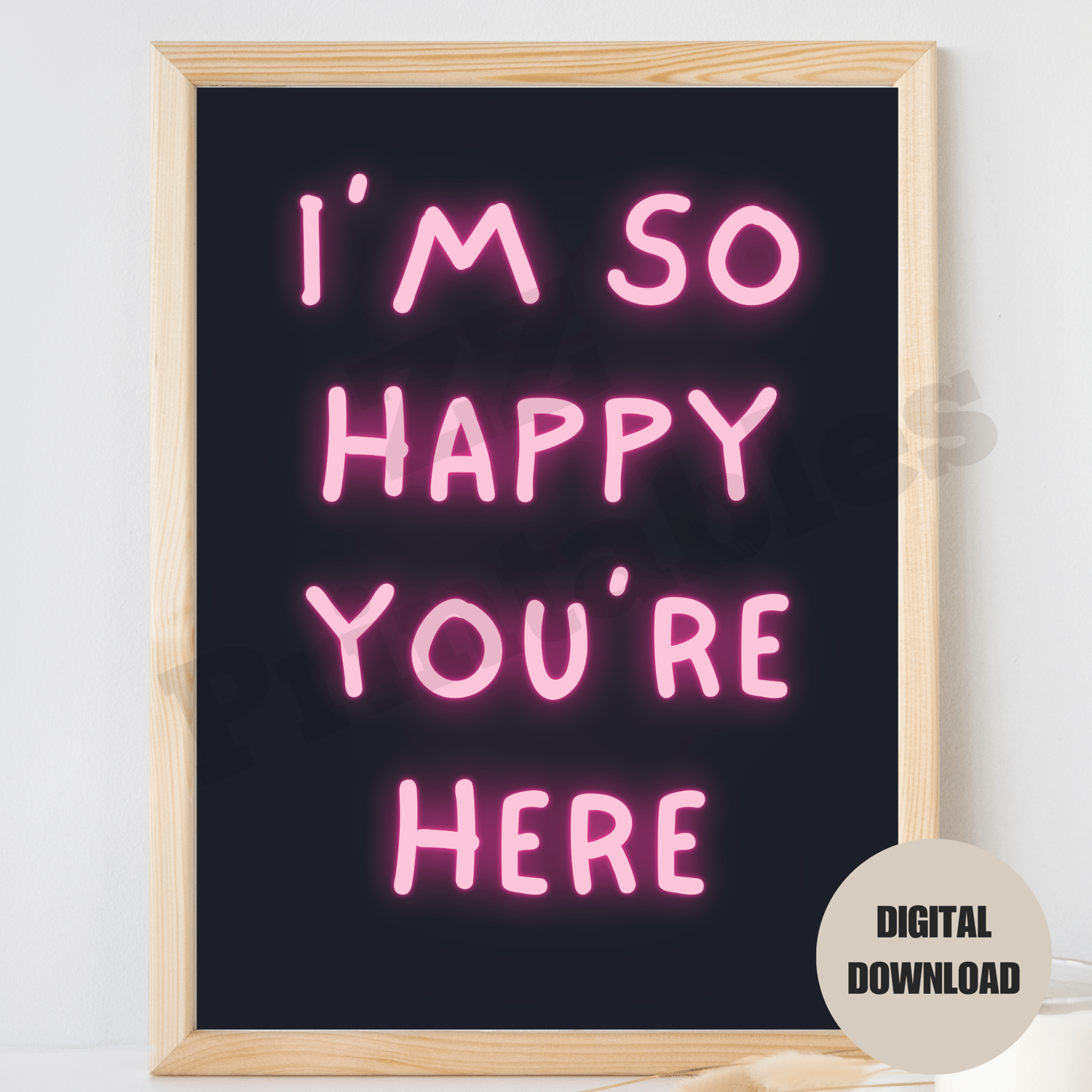 I'm So Happy You're Here print school teacher student poster black pink text artwork class decor printable wall art digital download. You will receive 1 high quality JPEG file (300 dpi) and 1 PDF file of the design. The design has a 4x5 ratio and can be printed in the following sizes: