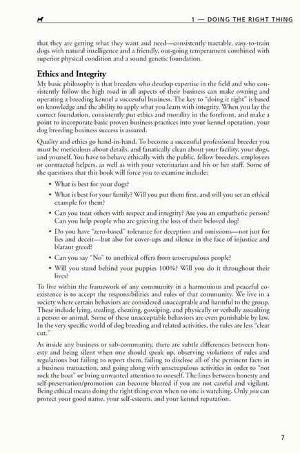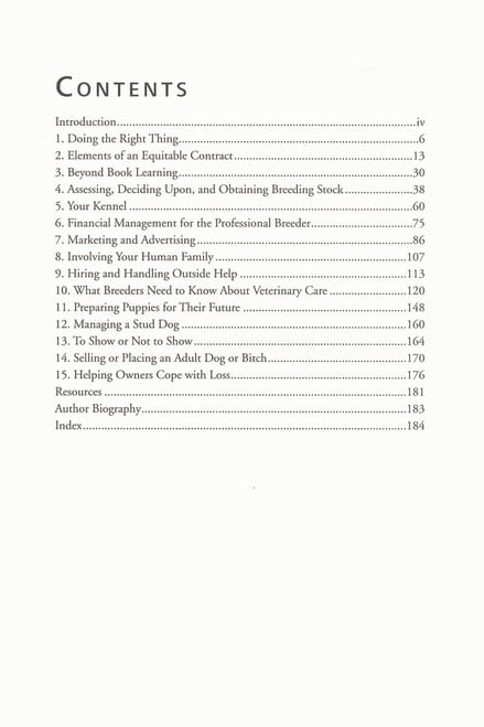 Becoming a dog breeder is a significant undertaking. And there is so much more you need to know to be a successful breeder beyond just knowing how to whelp and raise puppies. Dog Breeders Professional Secrets tells you what it takes to be a successful and ethical dog breeder. Topics include networking, financial matters, acquiring breeding stock, kennel design, and many more. Sylvia Smart shares her real-life experiences (both good and bad) and explores dozens of issues that a prospective breeder must consider to build a high quality dog breeding business. This is a practical, educational book with a focus on doing things professionally, with lots of planning and forethought. And you'll learn how to be financially successful in your chosen profession all the while knowing that you have done it "the right way."