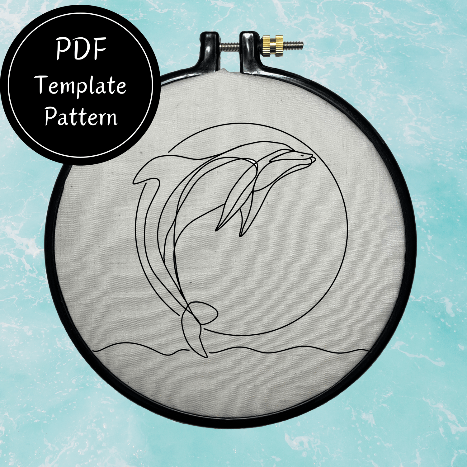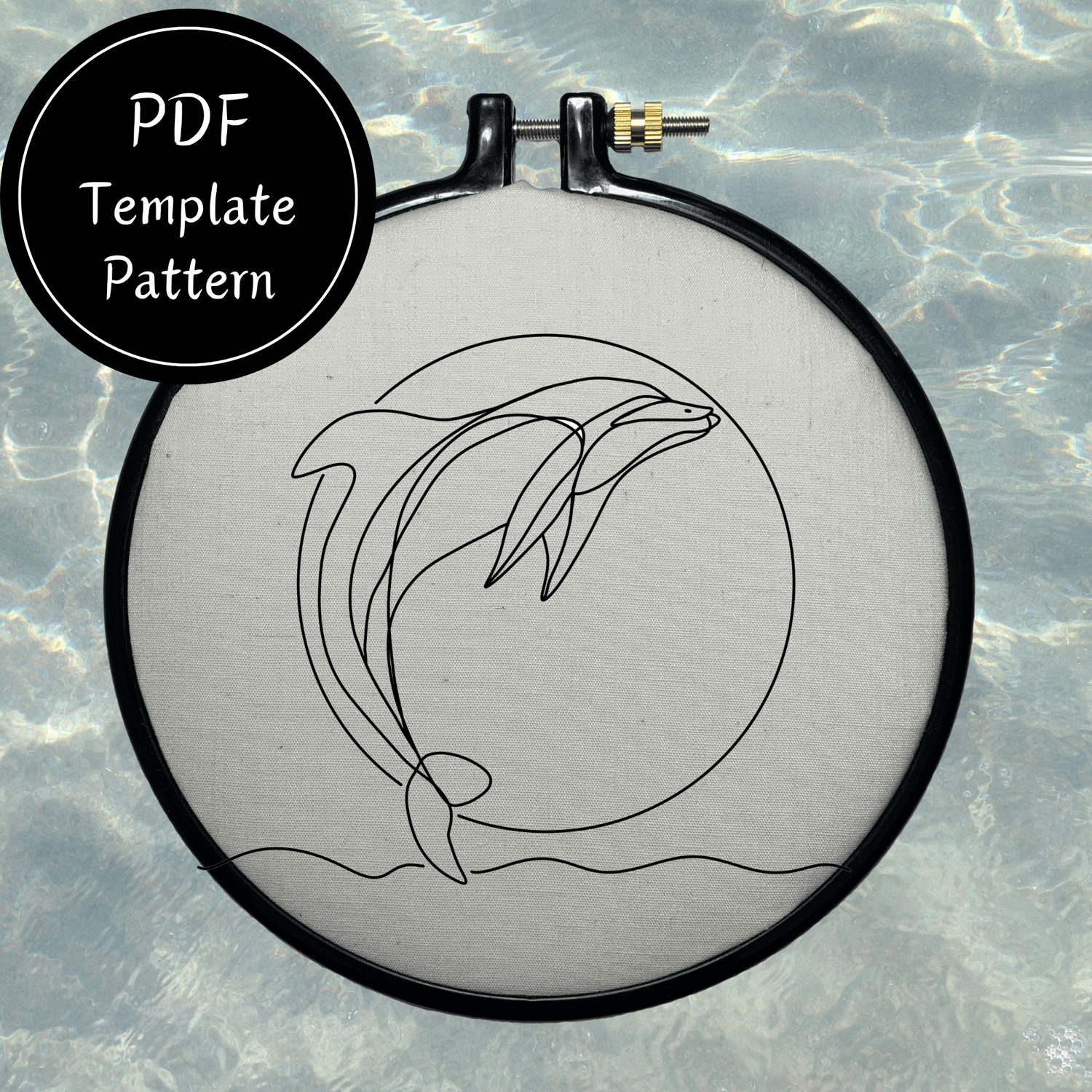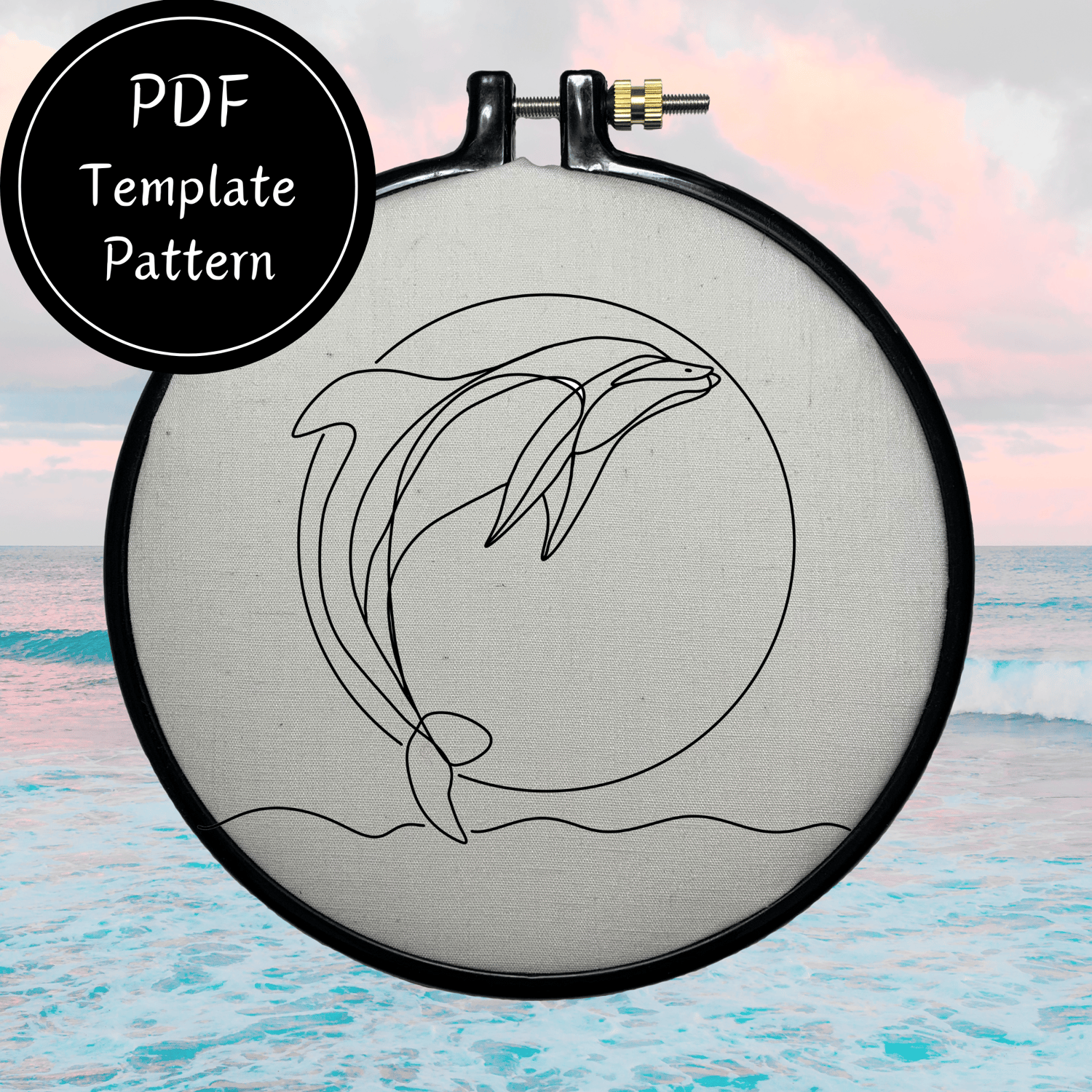 Dolphin Line Drawing Hand Embroidery Pattern DIY Embroidery