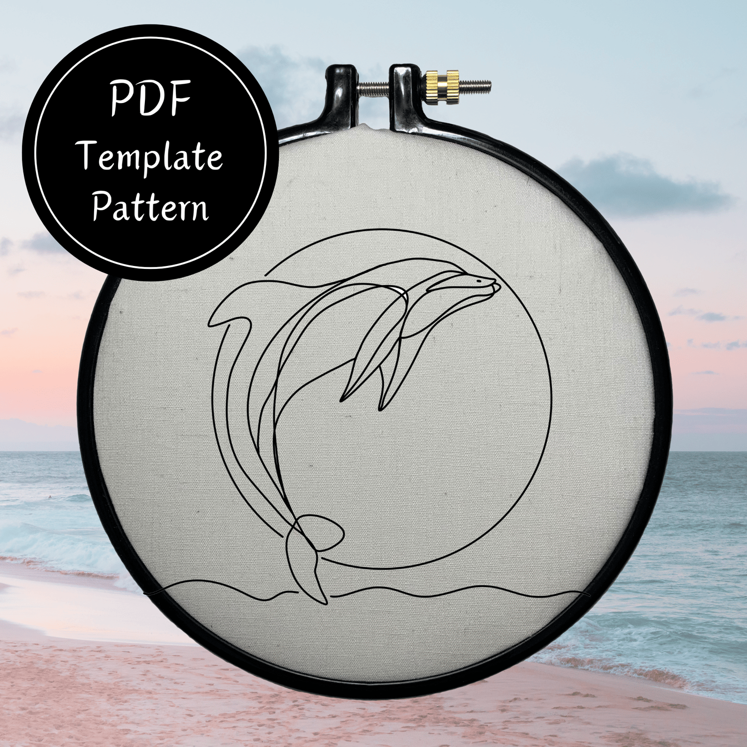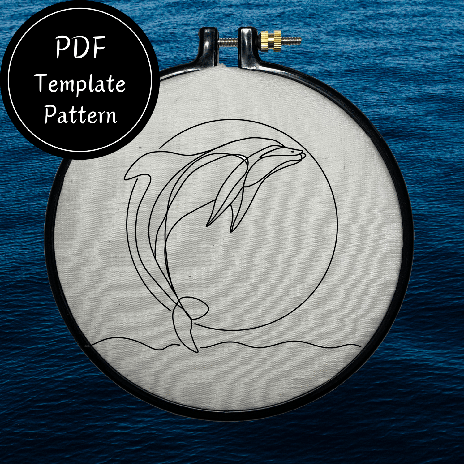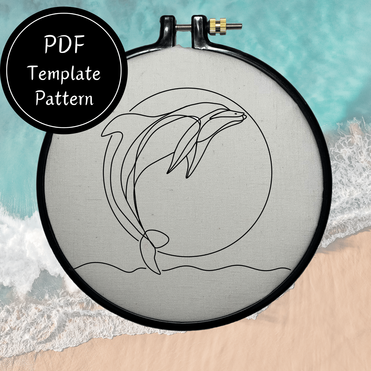 Dolphin Line Drawing Hand Embroidery Pattern DIY Embroidery
