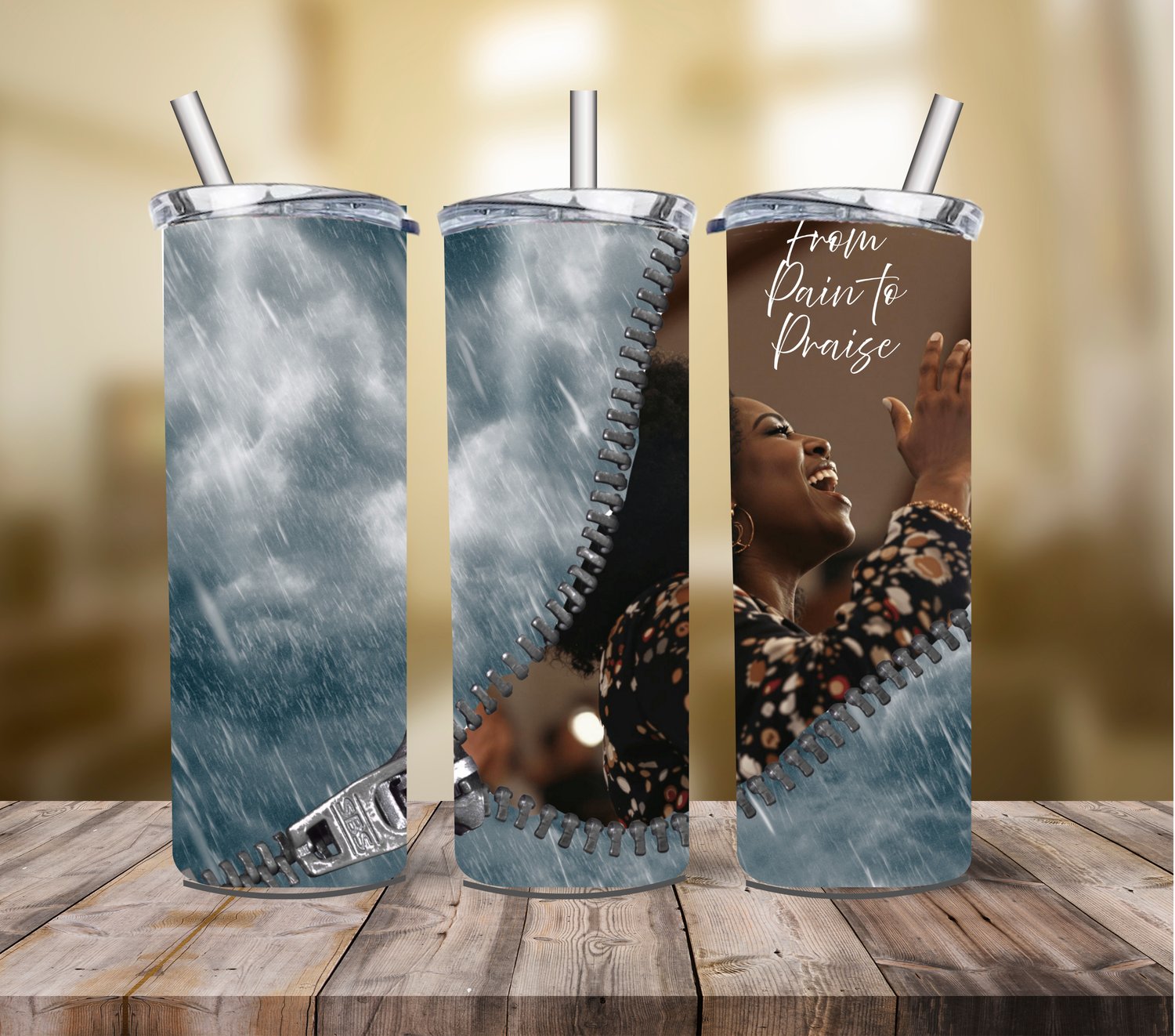 Unzip your testimony. This moving sublimation design titled “From Pain to Praise” captures the powerful transition from life’s stormy moments to joy, healing, and worship. Featuring a realistic zipper effect revealing a joyful woman praising God against a rainy, stormy background—this design visually tells a story of breakthrough.