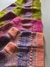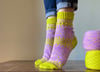 Reverie socks are full of energy—a cuff-down design that celebrates color and texture, featuring twisted rib, vertical stripe colorwork, bobbles, and a short-row garter-stitch heel. These socks use just two colors of yarn with short repeats, making the colorwork a cinch for experienced knitters and accessible to adventurous beginners. This pattern includes inverse versions of all the charts and a photo tutorial for the heel section.