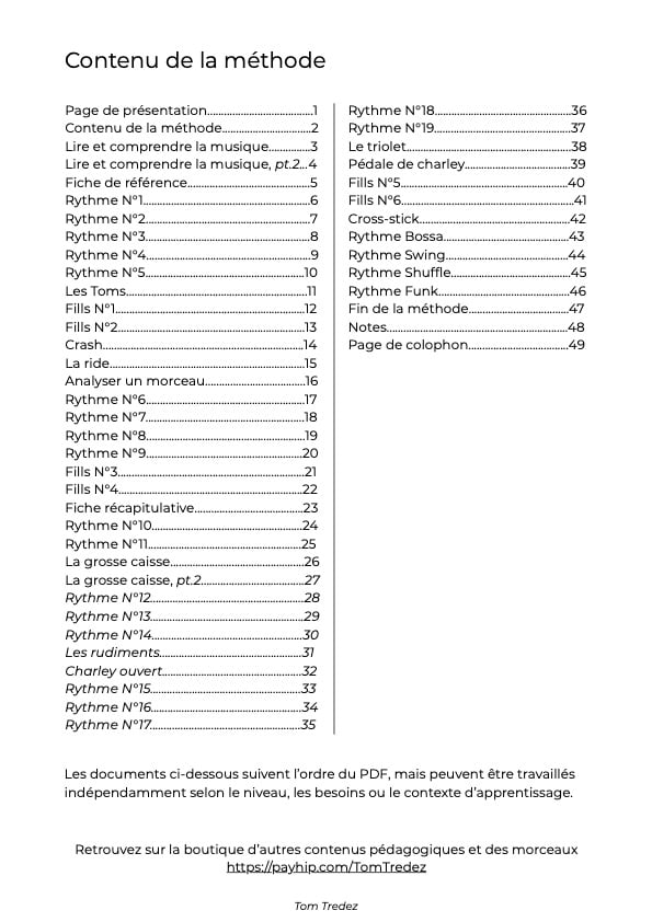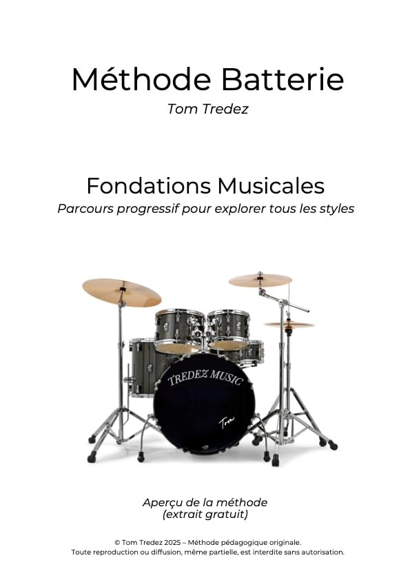 Cette méthode de batterie propose un parcours progressif, structuré et immédiatement exploitable, conçu pour poser des bases solides dès les premiers cours.