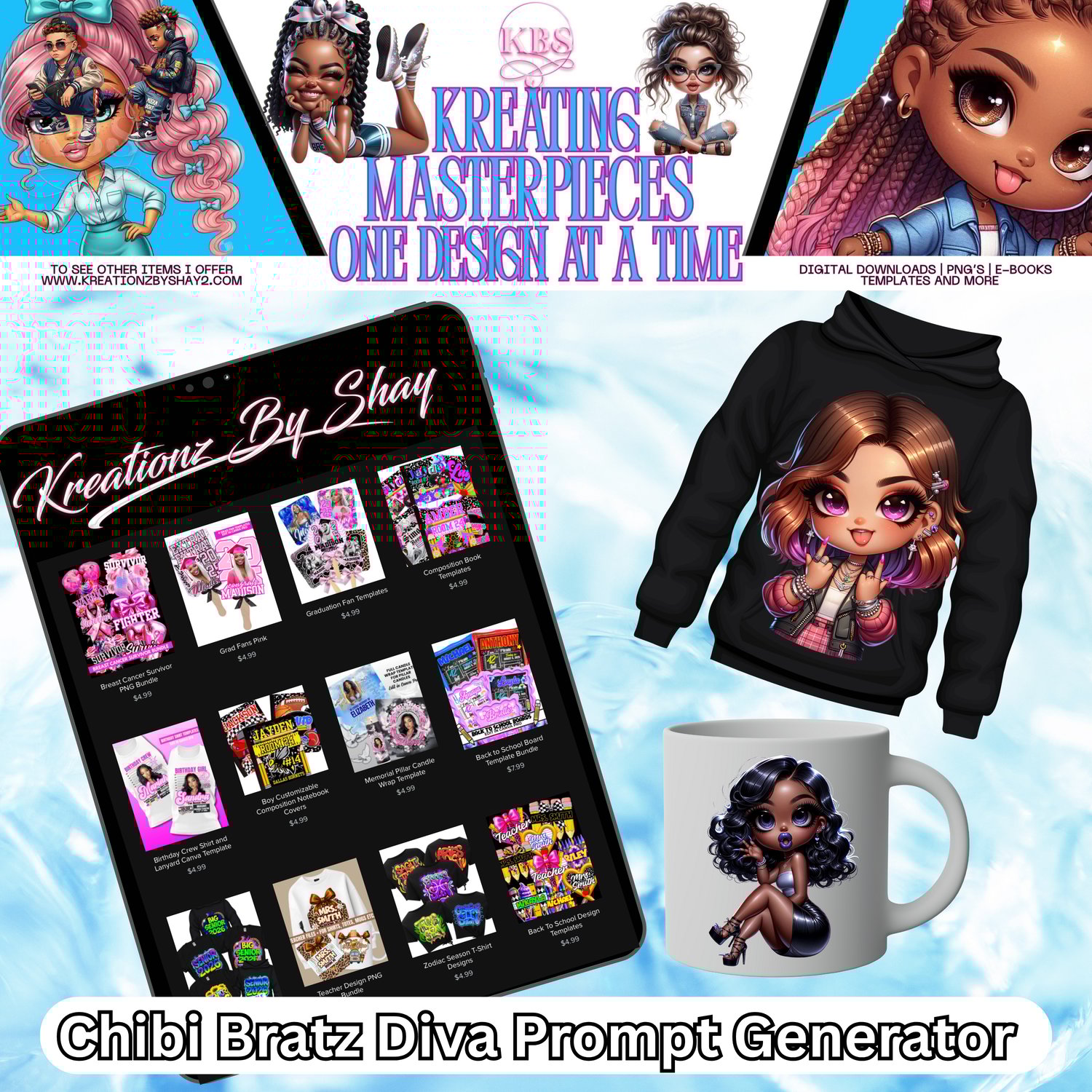 Step into the world of glam, attitude, and cuteness overload with the Chibi Bratz Diva Prompt Generator! Perfect for digital artists, designers, and brand creators, this tool helps you generate stylish, personality-packed prompts to create Bratz-inspired chibi characters dripping in confidence and luxury.