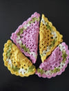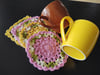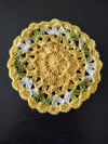 The coaster uses simple stitches and the variegated green adds a nice touch to the pattern.