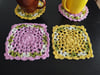 A simple yet elegant design to add a splash of color to your table! Gauge is not required for this project . However if you use a thicker yarn and bigger hook your finished project will be differently sized from the sample shown.